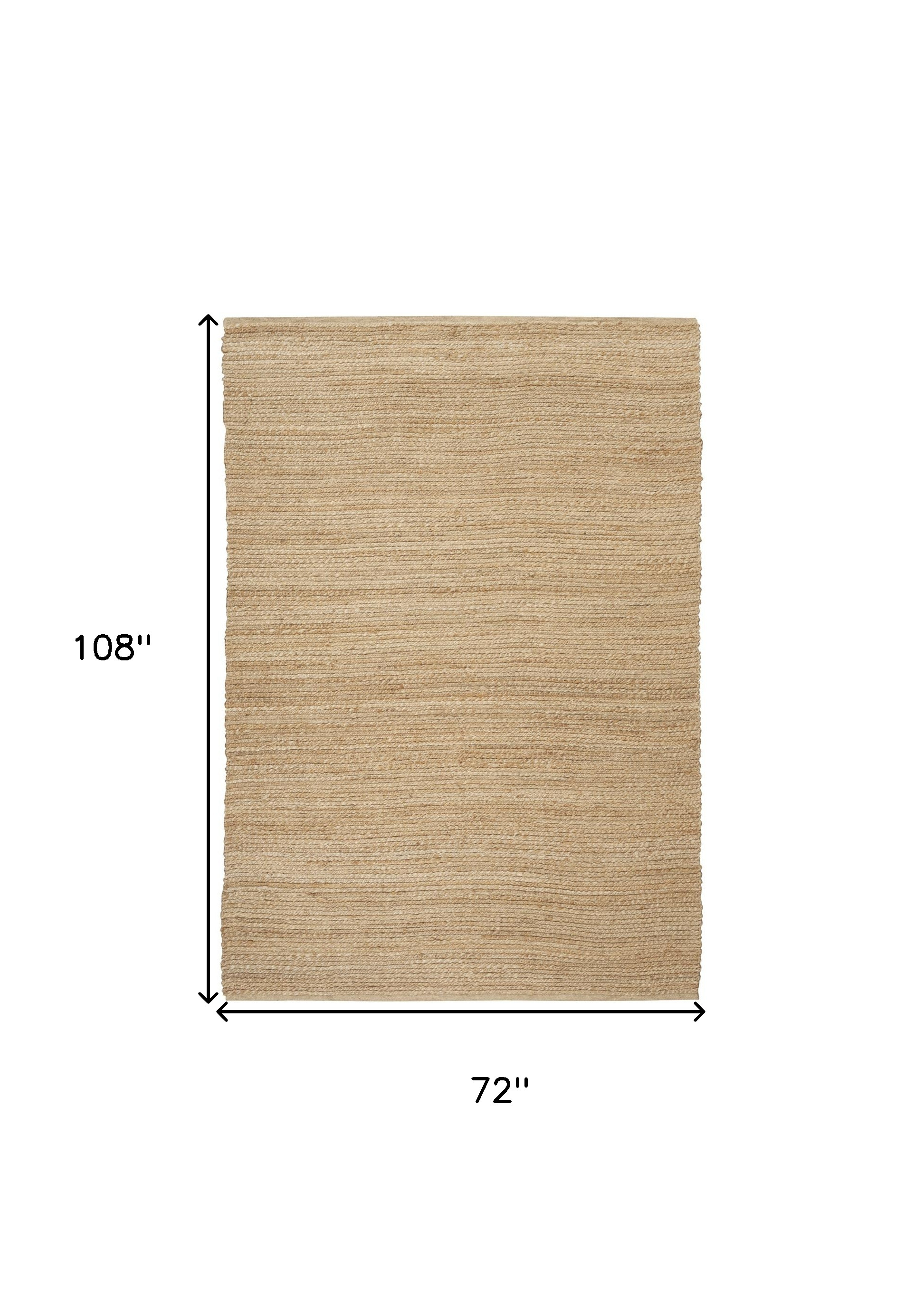 This 6-foot x 9-foot natural jute flatweave handmade area rug, is a great way to add warmth to a room. Crafted from jute fibers that give this piece premium texture, refinement, and appeal. Rugs are a great way to showcase your style, hide imperfections, warm your home and reduce noise. This rectangle shaped rug flaunts a natural color that will be a great way to accent your space. Solid colors are versatile and will blend with any existing decor style. This larger sized, cottage styled rug is ready to create a focal point or statement piece in your room. 72-inch h x 108-inch w x 0.5-inch d.