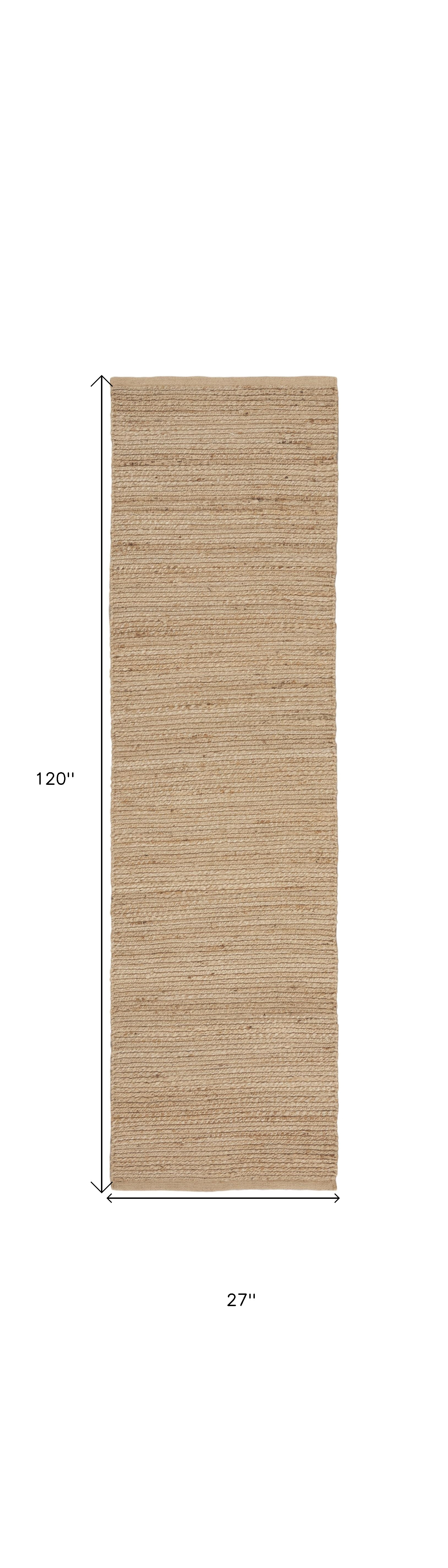 Add some artistry to your room with this 10-foot natural jute flatweave handmade runner rug. Crafted from jute fibers that give this piece premium texture, refinement, and appeal. Rugs are a great way to showcase your style, hide imperfections, warm your home and reduce noise. This runner shaped rug flaunts a natural color that will be a great way to accent your space. Solid colors are versatile and will blend with any existing decor style. This cottage style runner makes a great accent for the hallway, in front of cabinets, in the laundry room, or any other space you need a narrow and long rug. 27-inch h x 120-inch w x 0.5-inch d.