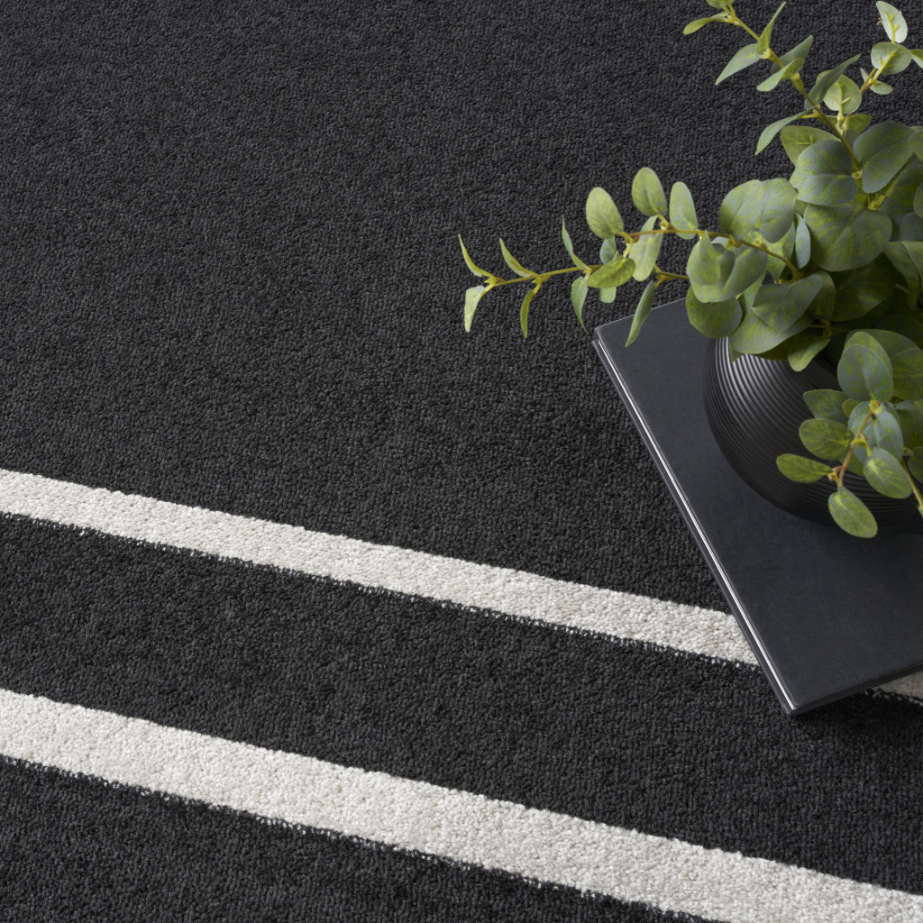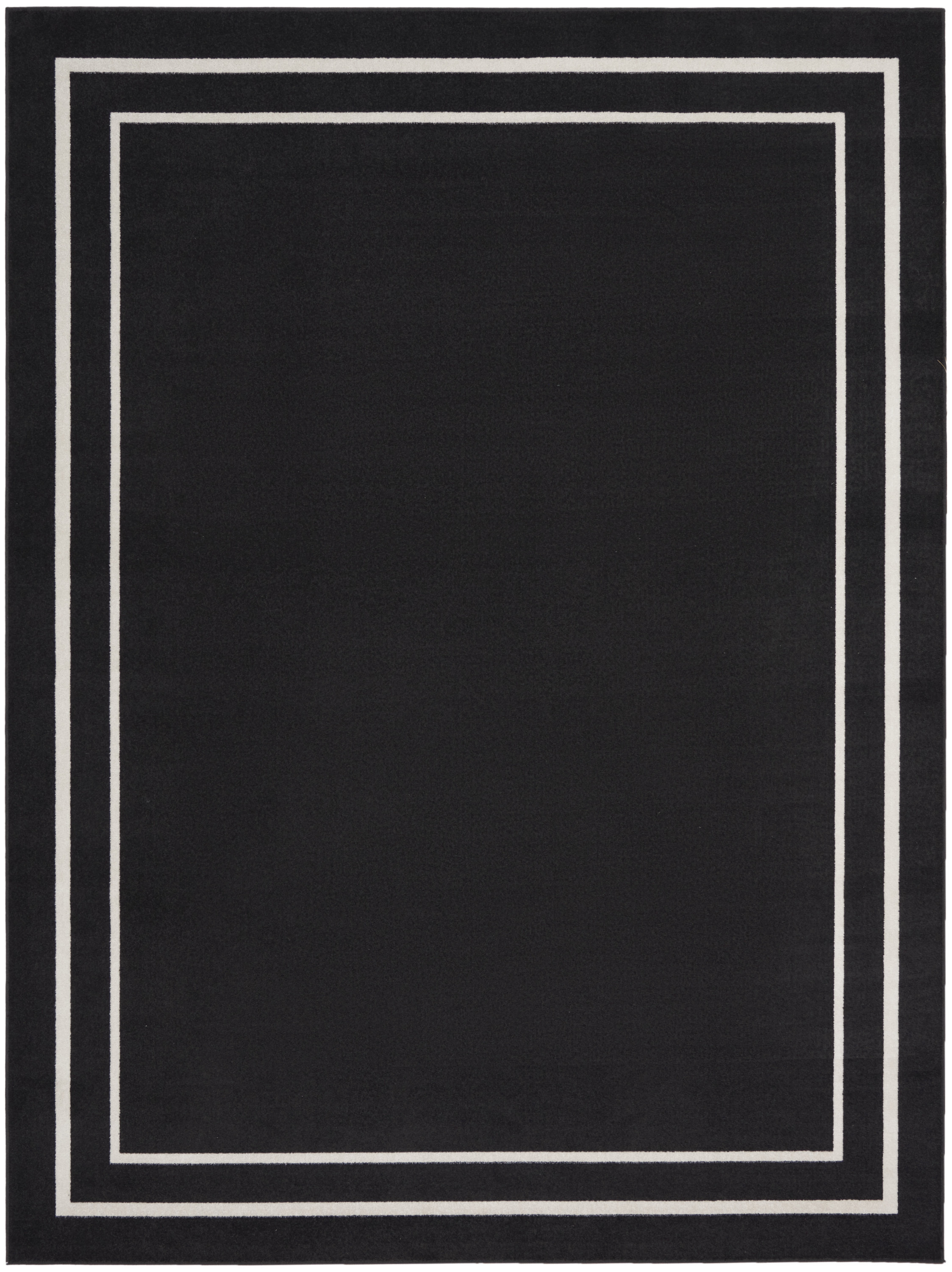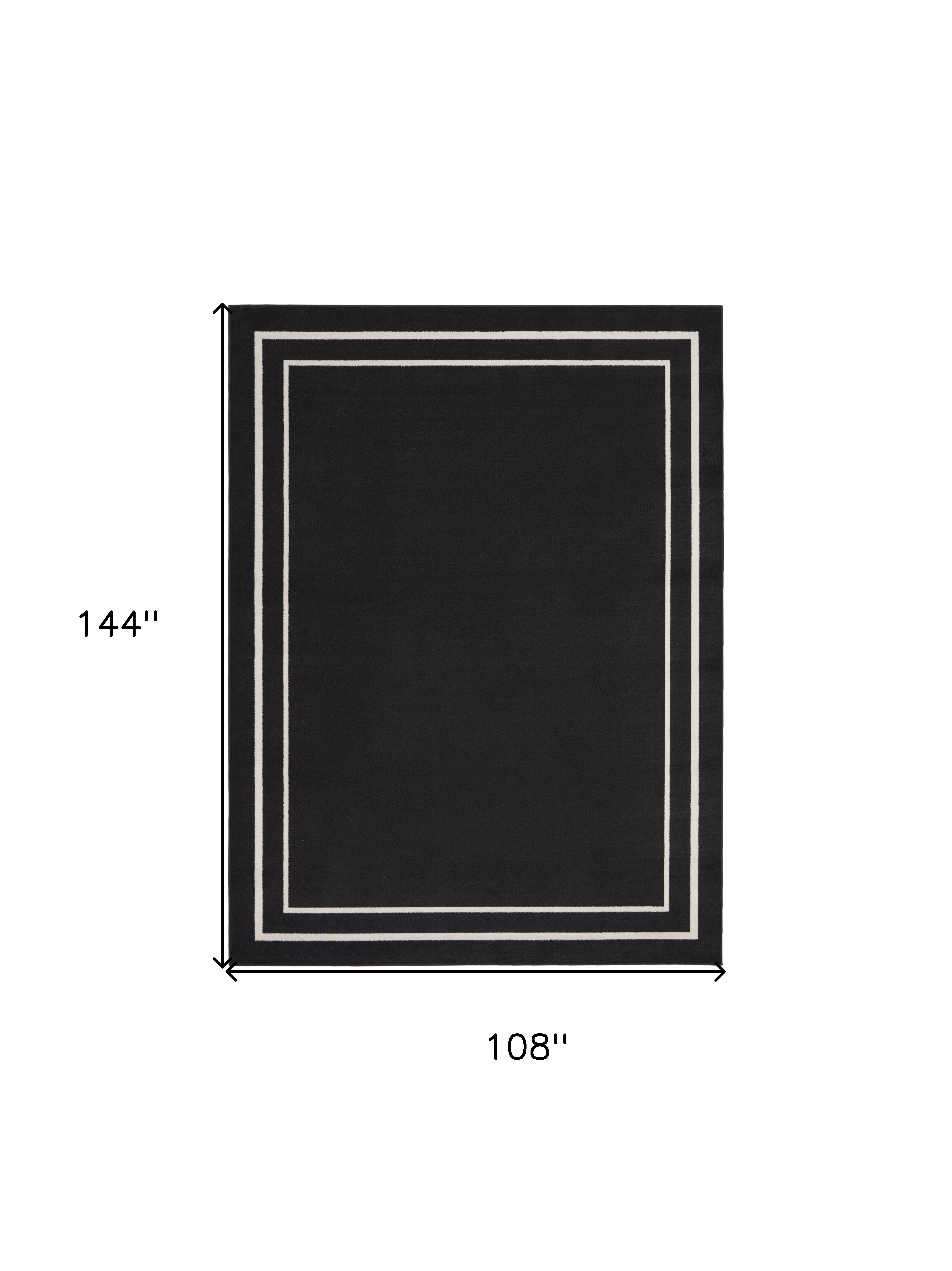 Set an inviting tone in your space with this 9-foot x 12-foot black and ivory indoor outdoor area rug. This rectangle shaped rug flaunts a black and ivory color that will be a great way to accent your space. Solid colors are versatile and will blend with any existing decor style. Makes a great way to dress up your patio, porch, or poolside, but also works well as a durable and easy to maintain option in the kitchen, family room, or mudroom. 108-inch h x 144-inch w x 0.25-inch d.