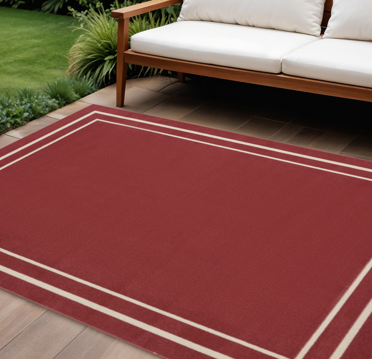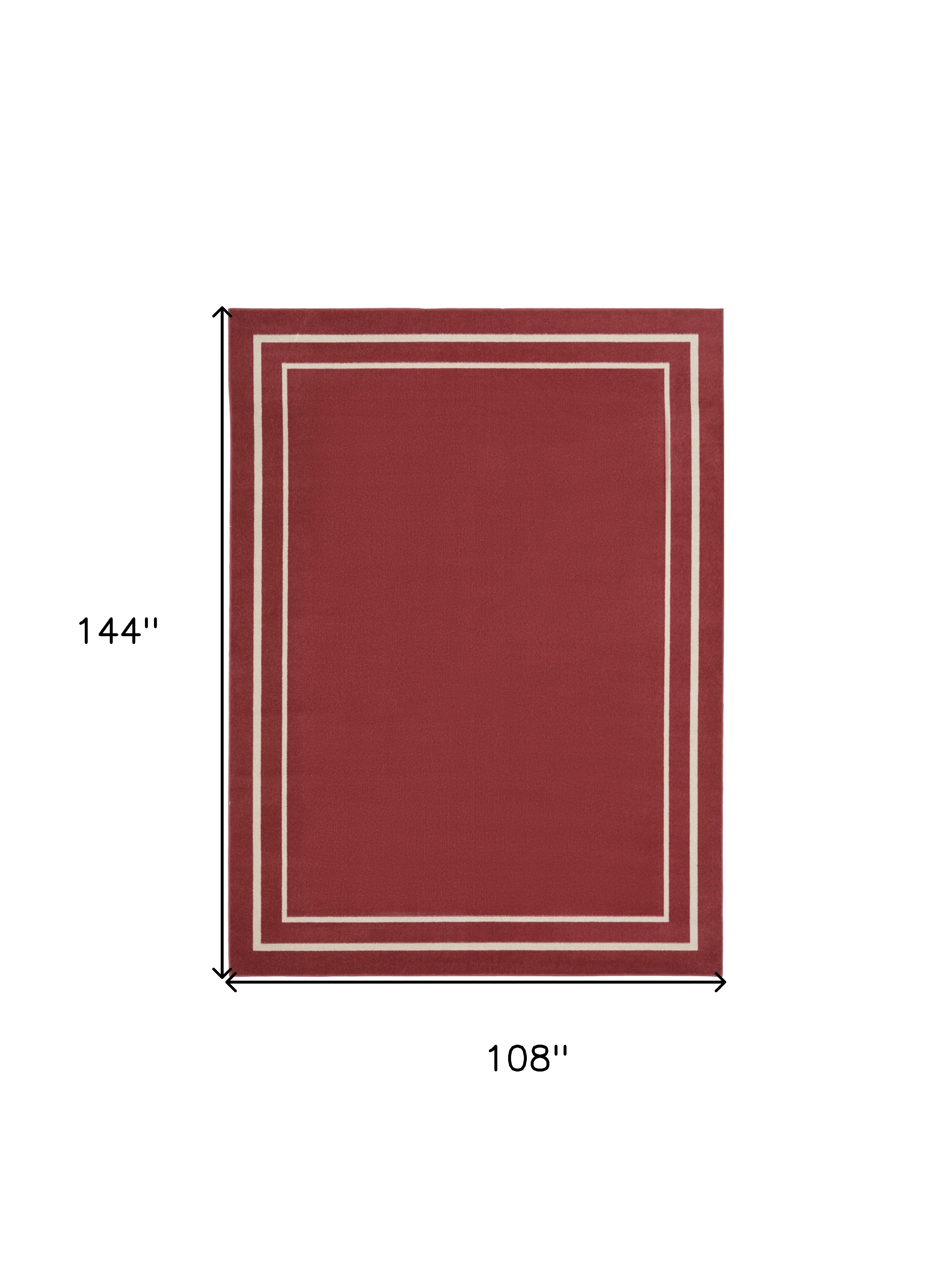 This 9-foot x 12-foot brick red and ivory indoor outdoor area rug, is a great way to add warmth to a room. This rectangle shaped rug flaunts a brick red and ivory color that will be a great way to accent your space. Solid colors are versatile and will blend with any existing decor style. Versatile in use, durable, and easy to maintain, this rug is an ideal solution to add a decorative and inviting touch to your indoor or outdoor space. 108-inch h x 144-inch w x 0.25-inch d.