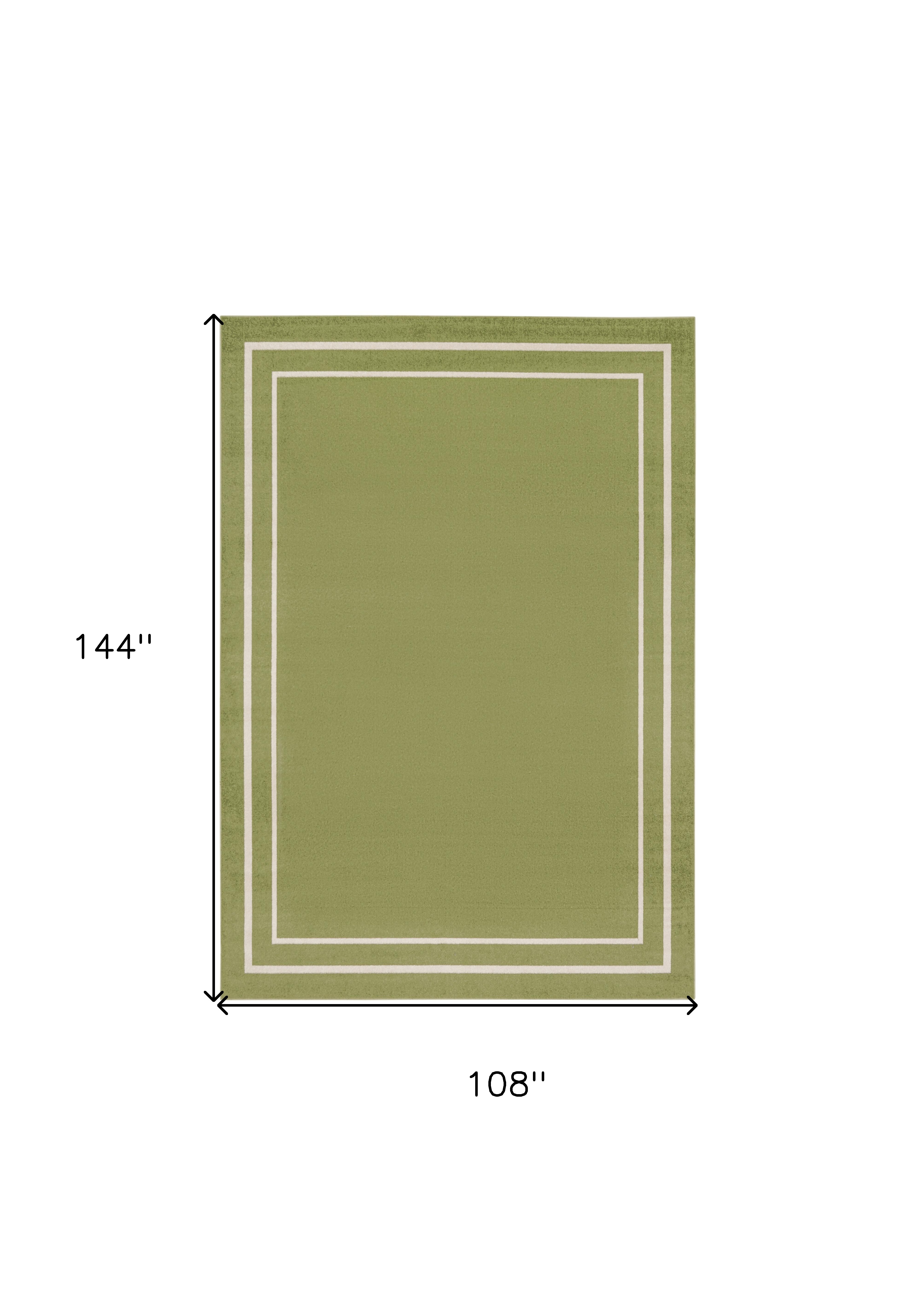 This 9-foot x 12-foot green and ivory indoor outdoor area rug, is a great way to add warmth to a room. This rectangle shaped rug flaunts a green and ivory color that will be a great way to accent your space. Solid colors are versatile and will blend with any existing decor style. Versatile in use, durable, and easy to maintain, this rug is an ideal solution to add a decorative and inviting touch to your indoor or outdoor space. 108-inch h x 144-inch w x 0.25-inch d.
