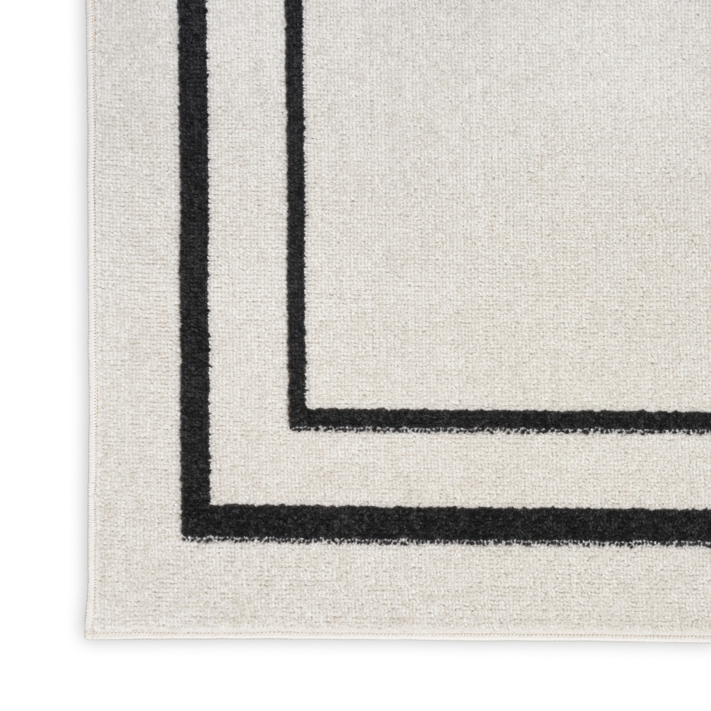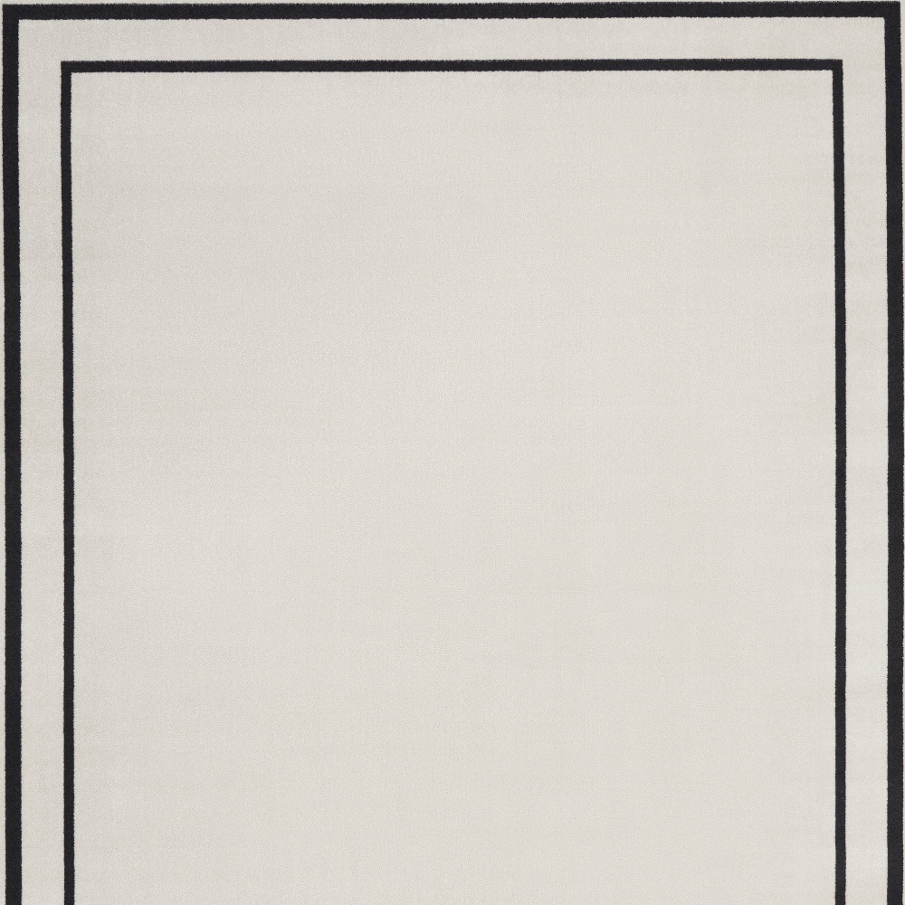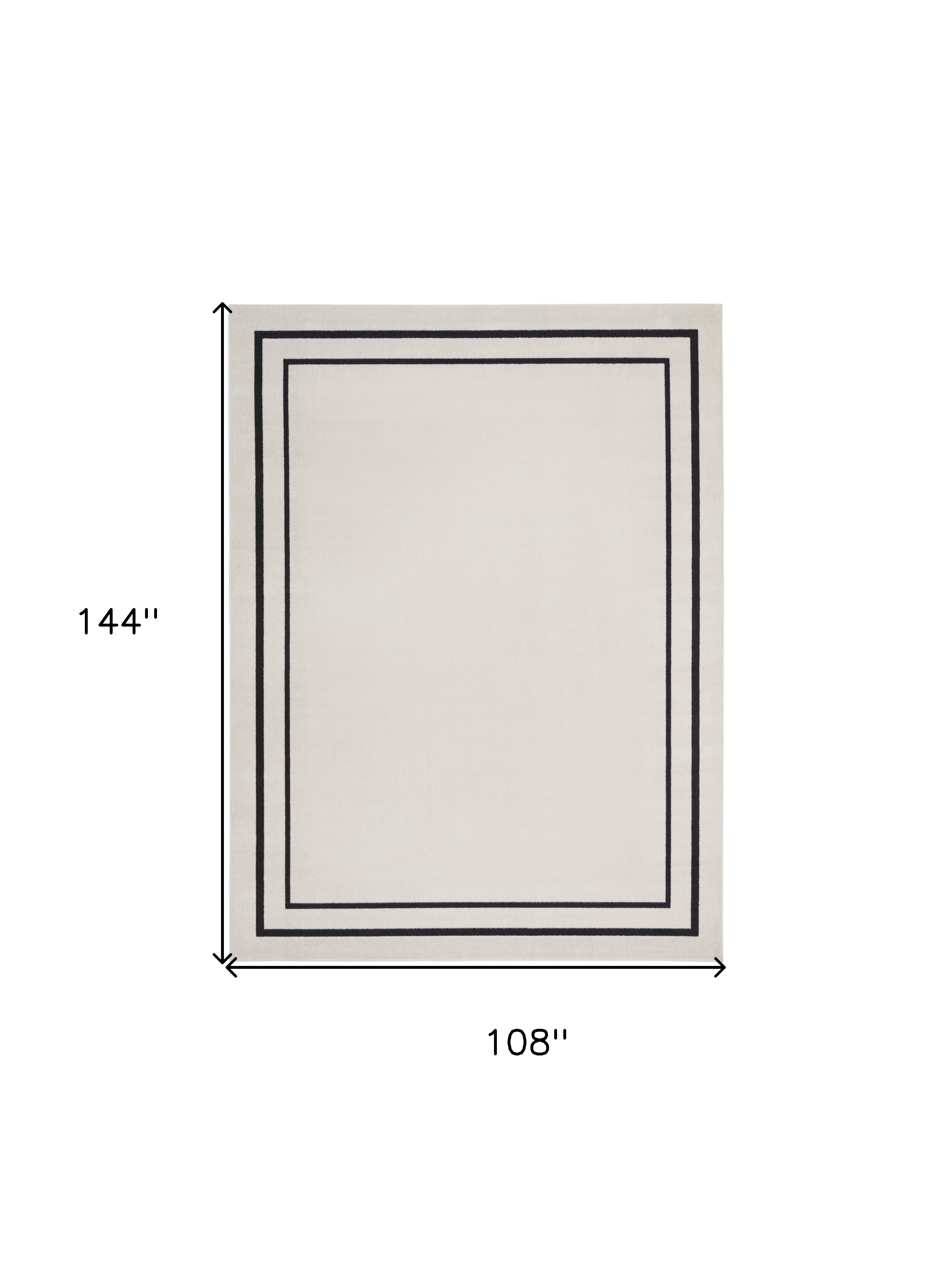 This 9-foot x 12-foot ivory and black indoor outdoor area rug, is a great way to add warmth to a room. This rectangle shaped rug flaunts a ivory and black color that will be a great way to accent your space. Solid colors are versatile and will blend with any existing decor style. Makes a great way to dress up your patio, porch, or poolside, but also works well as a durable and easy to maintain option in the kitchen, family room, or mudroom. 108-inch h x 144-inch w x 0.25-inch d.