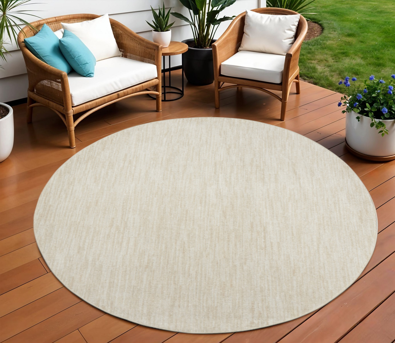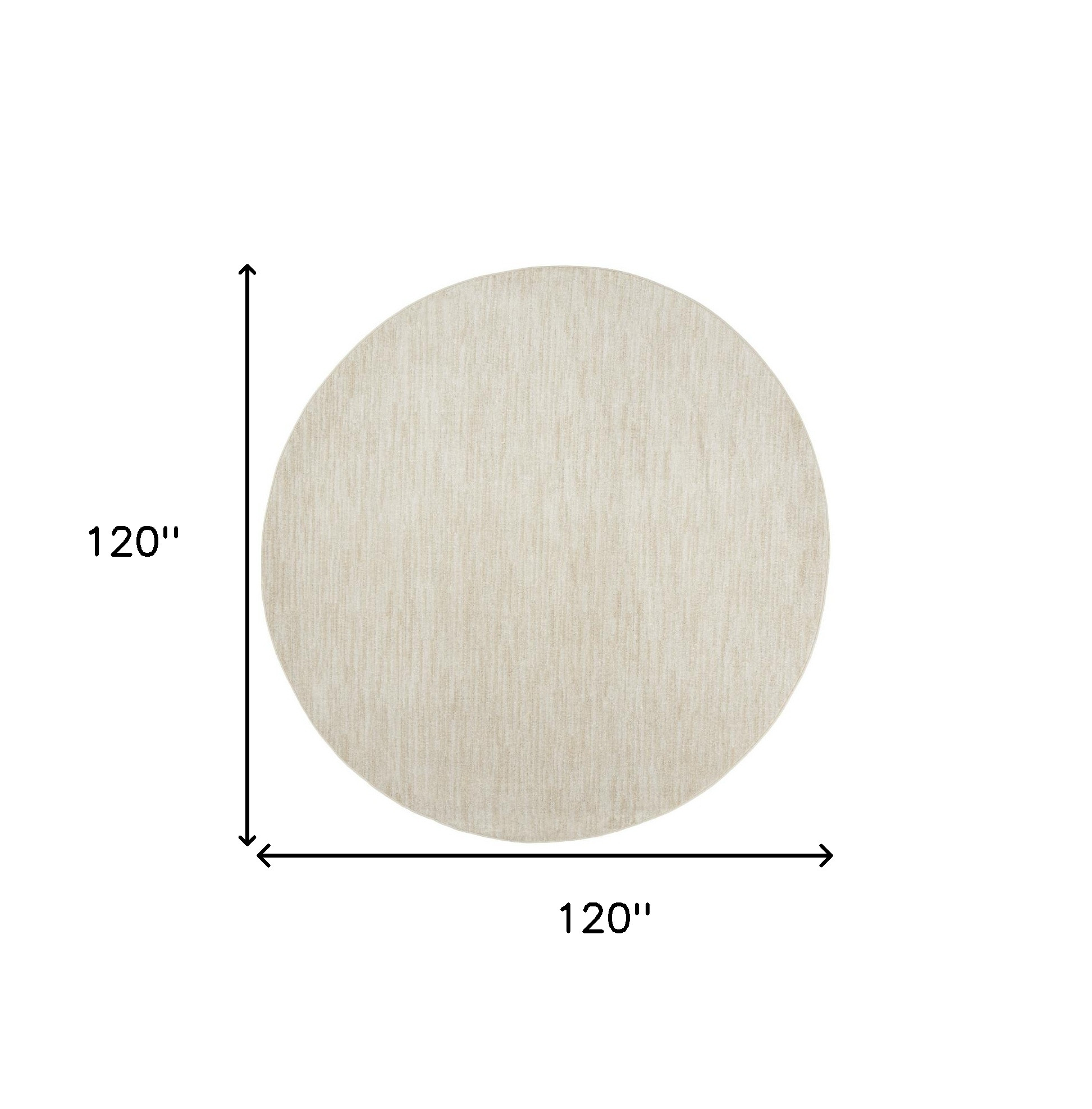 Set an inviting tone in your space with this 10-foot beige and ivory round indoor outdoor area rug. This geometric round shaped rug features a solid color that combines hue and shape for a great look. Solid colors are versatile and will blend with any existing decor style. Versatile in use, durable, and easy to maintain, this rug is an ideal solution to add a decorative and inviting touch to your indoor or outdoor space. 120-inch h x 120-inch w x 0.25-inch d.