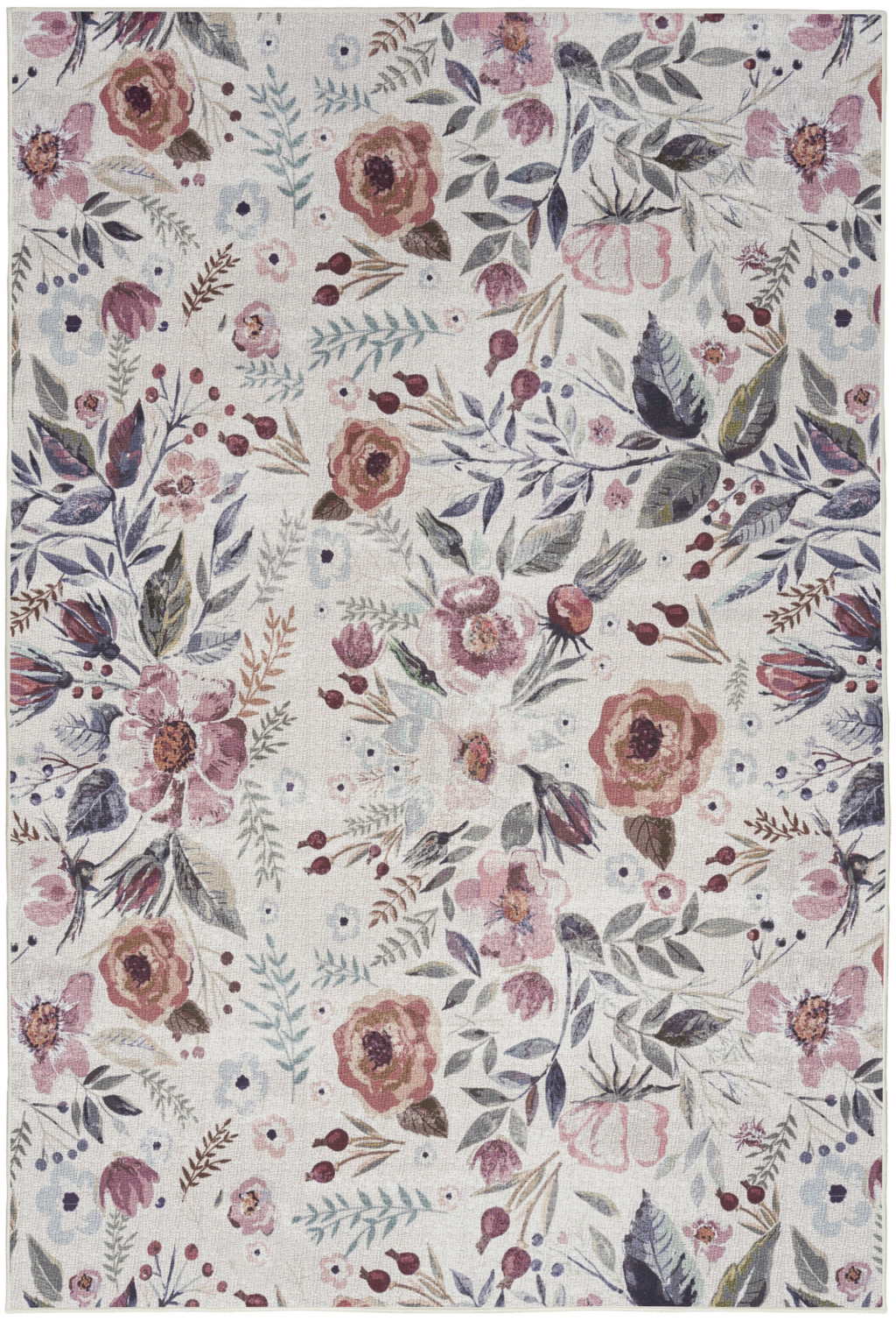 washable non skid area rug, skid area rug, non skid area rug, loom washable non skid area, pink ivory floral power loom |