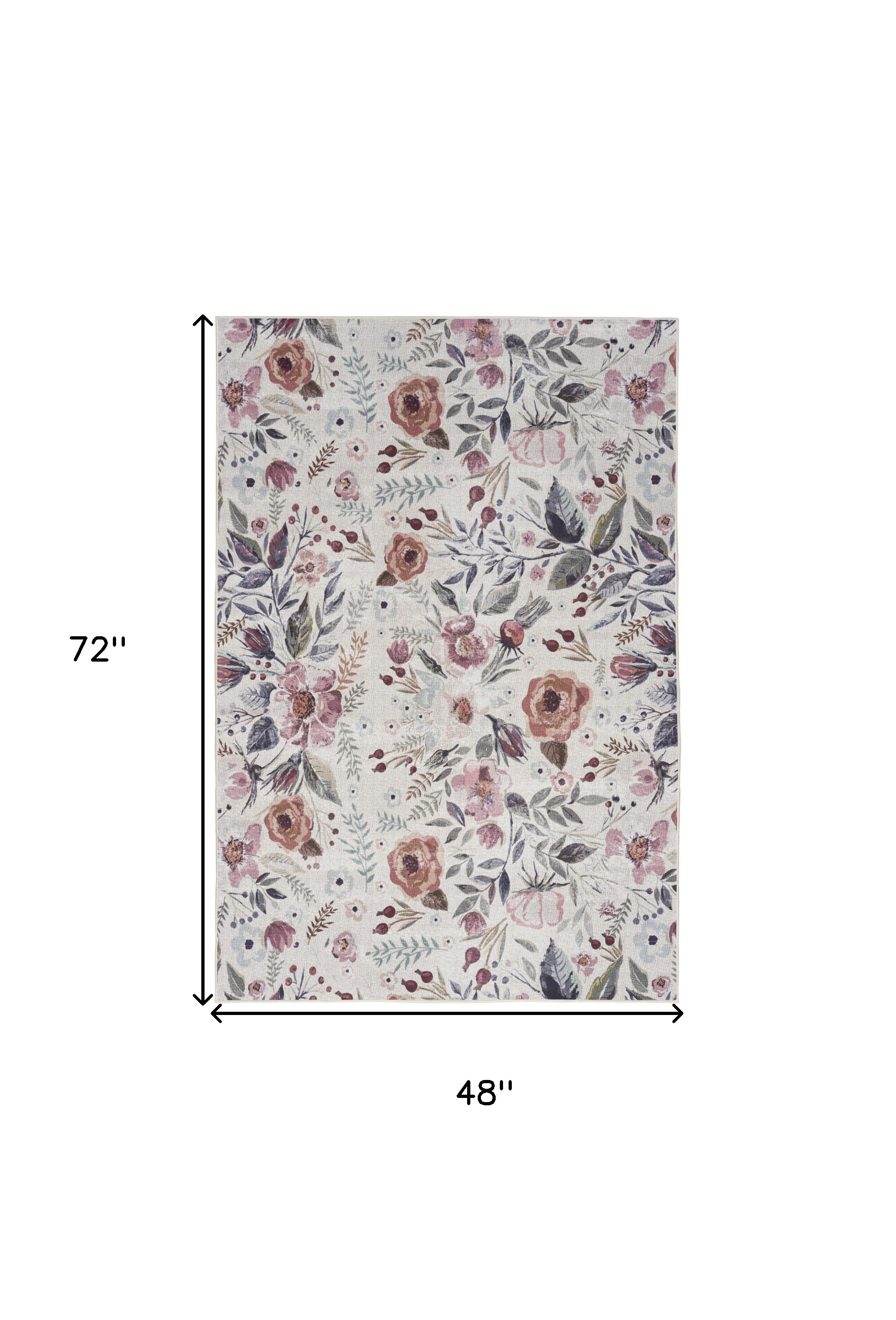 Add great coloration and comfortable texture to your space with this 4-foot x 6-foot pink and ivory floral power loom washable non skid area rug. This rectangle shaped rug features a floral design in pink and ivory to give it visual interest. A classic shape marries with good looking design for your space place this area rug against a hardwood or tile floor and it will enliven your living space with style and sophistication. 48-inch H x 72-inch W x 0.25-inch D