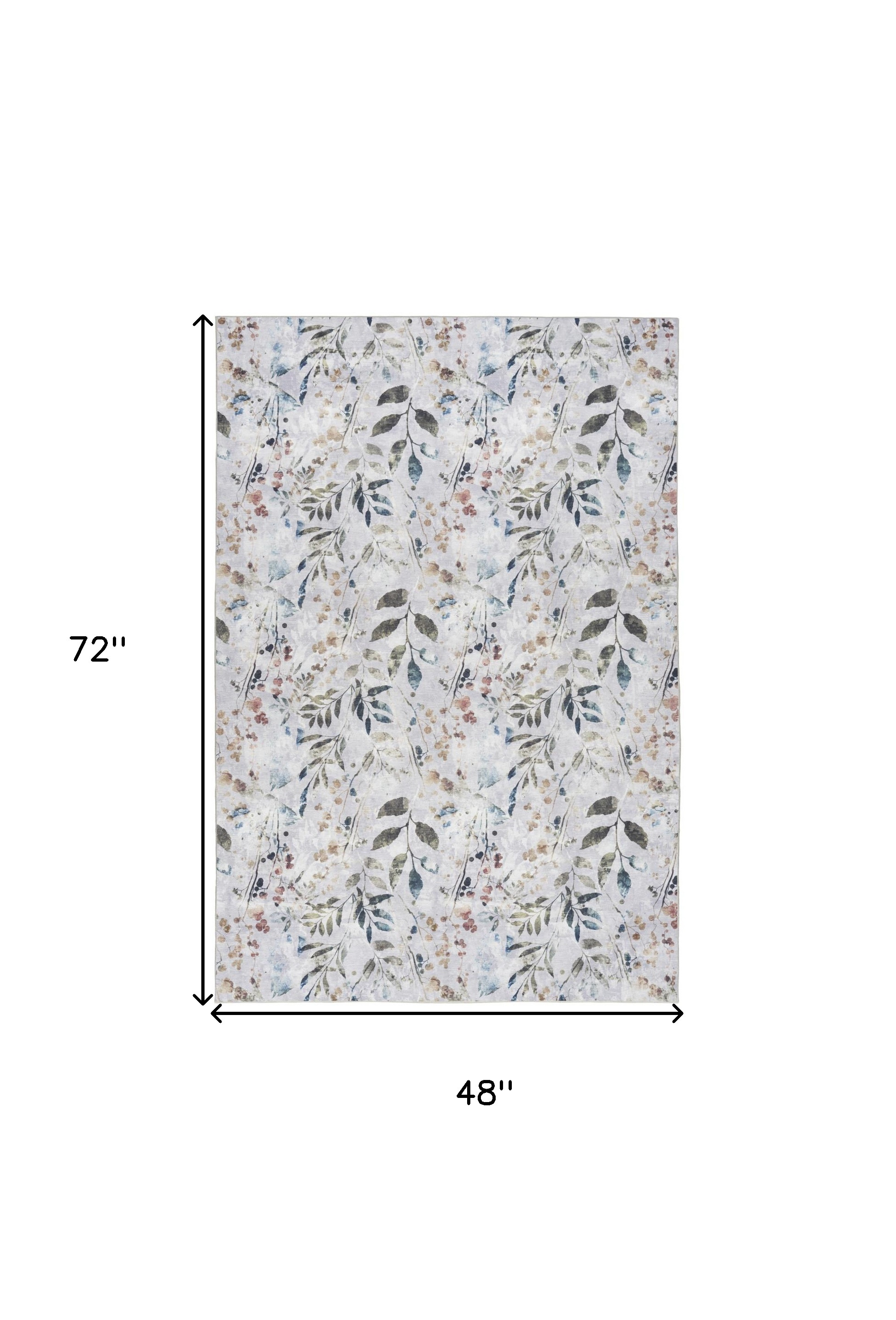 Set an inviting tone in your space with this 4-foot x 6-foot gray and blue floral washable non skid area rug. Rugs are a great way to showcase your style, hide imperfections, warm your home and reduce noise. This smaller sized, contemporary styled rug is just what you need for your walkway, bedside, in front of door, cabinet, refrigerator, or chair. 48-inch h x 72-inch w x 0.25-inch d.