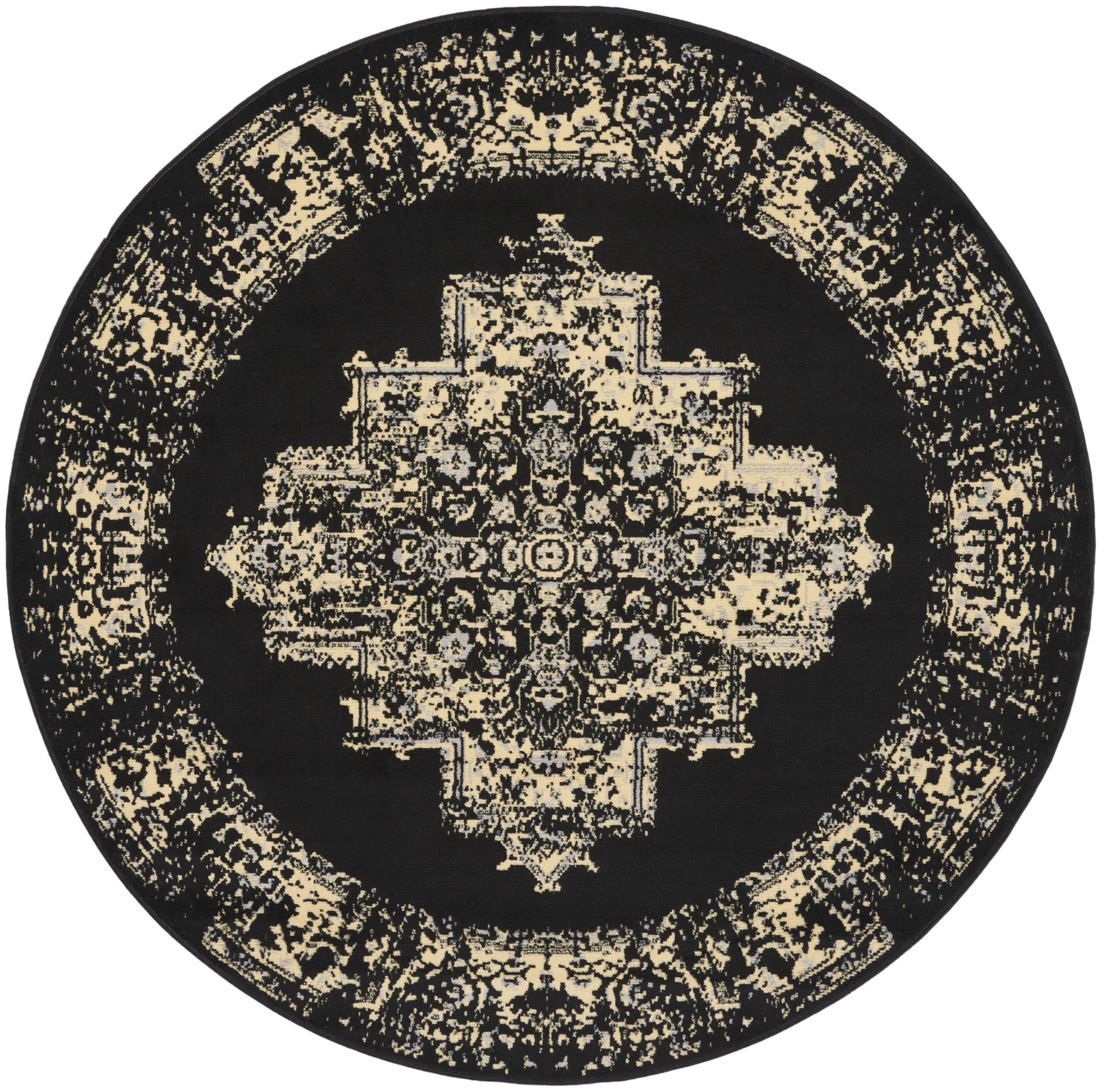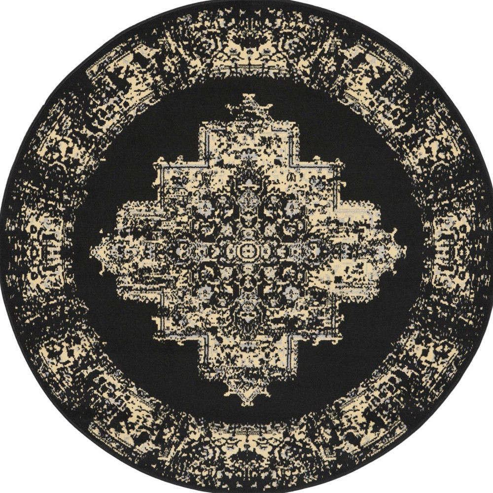 distressed non skid round rug, non skid round rug, skid round rug, medallion distressed non skid round, black medallion distressed non skid |