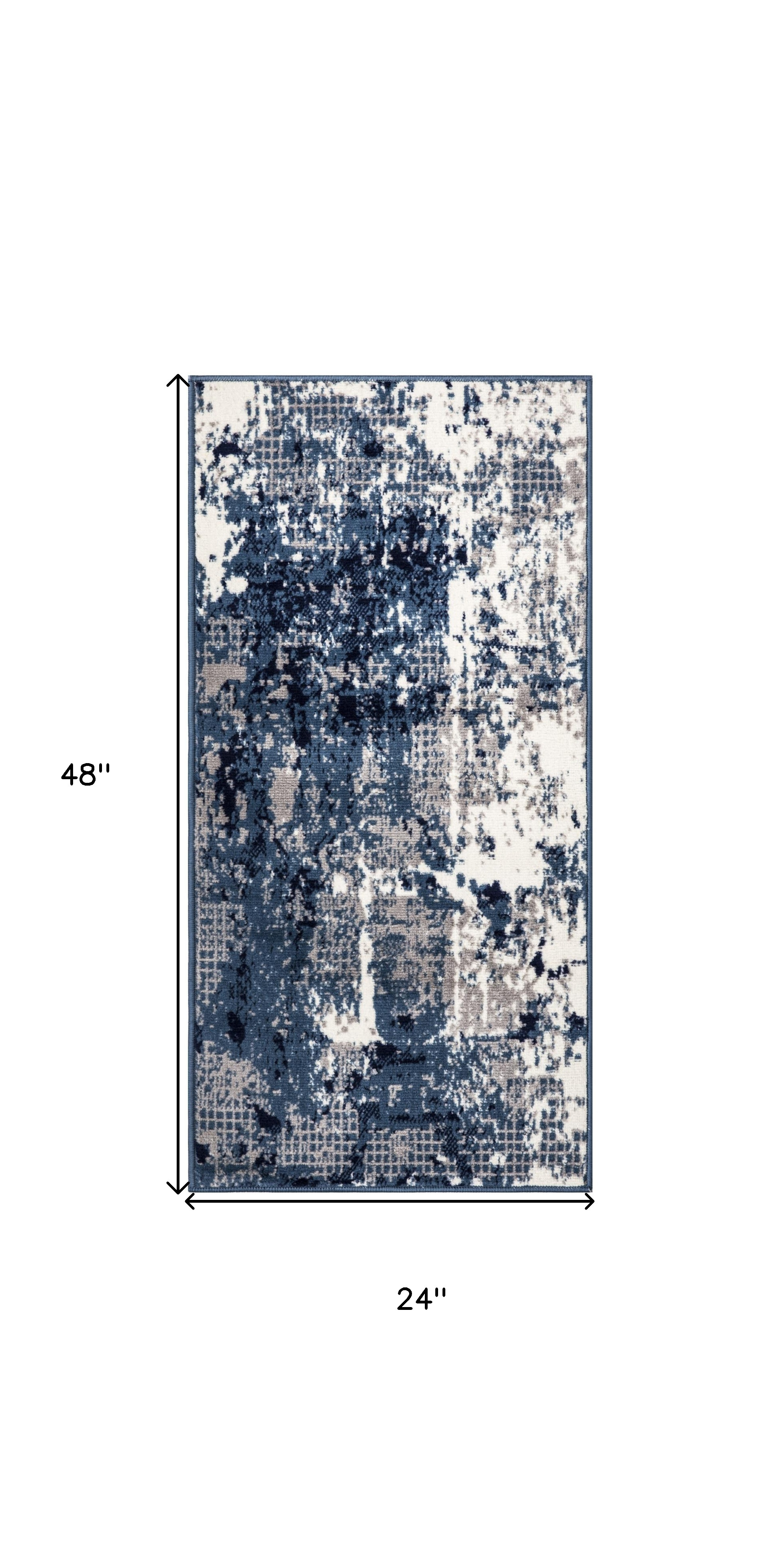 Add great coloration and comfortable texture to your space with this 2-foot x 4-foot blue and ivory abstract area rug. Built to last, this rug crafted from polypropylene fibers is known for its durability and long lasting appeal. Rugs are a great way to showcase your style, hide imperfections, warm your home and reduce noise. This smaller sized, modern styled rug is just what you need for your walkway, bedside, in front of door, cabinet, refrigerator, or chair. 24-inch h x 48-inch w x 0.5-inch d.