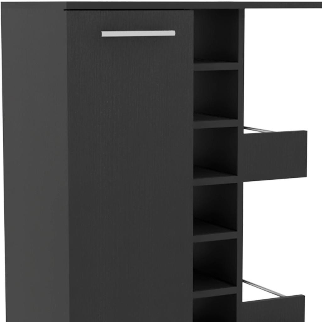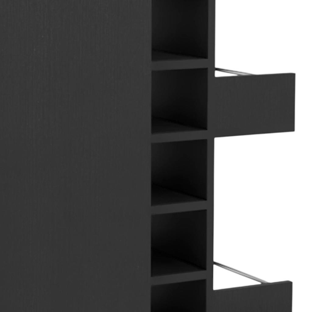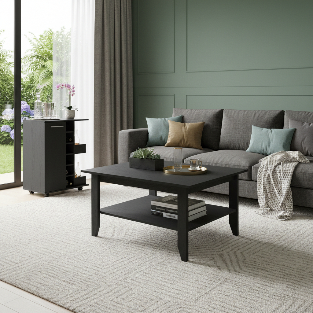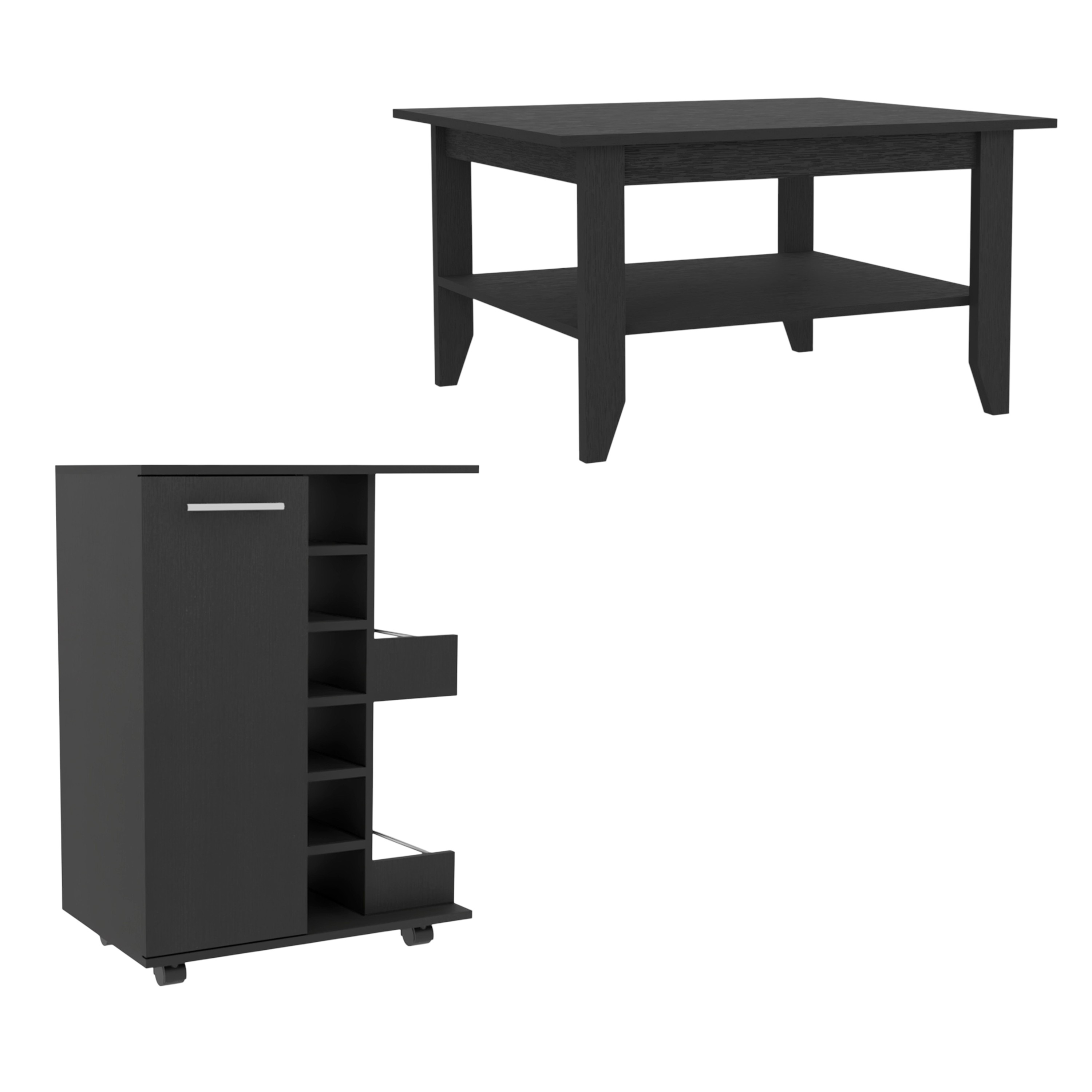 This set of two black wood coffee table and bar cart set is an ideal way to make the most of your space for stylish living and entertaining. This table features quality construction from manufactured wood and an updated monotone color scheme with black as the main color on both the top and the base. Includes a single shelf for handy storage or display space. This rectangular table is an classic yet updated way to accent your room. Wheels give the table added versatility and mobility if needed. It has an attractive design that will definitely breathe some fresh air into your interior. 32.32-inch h x 23.62-inch w x 14.76-inch d.