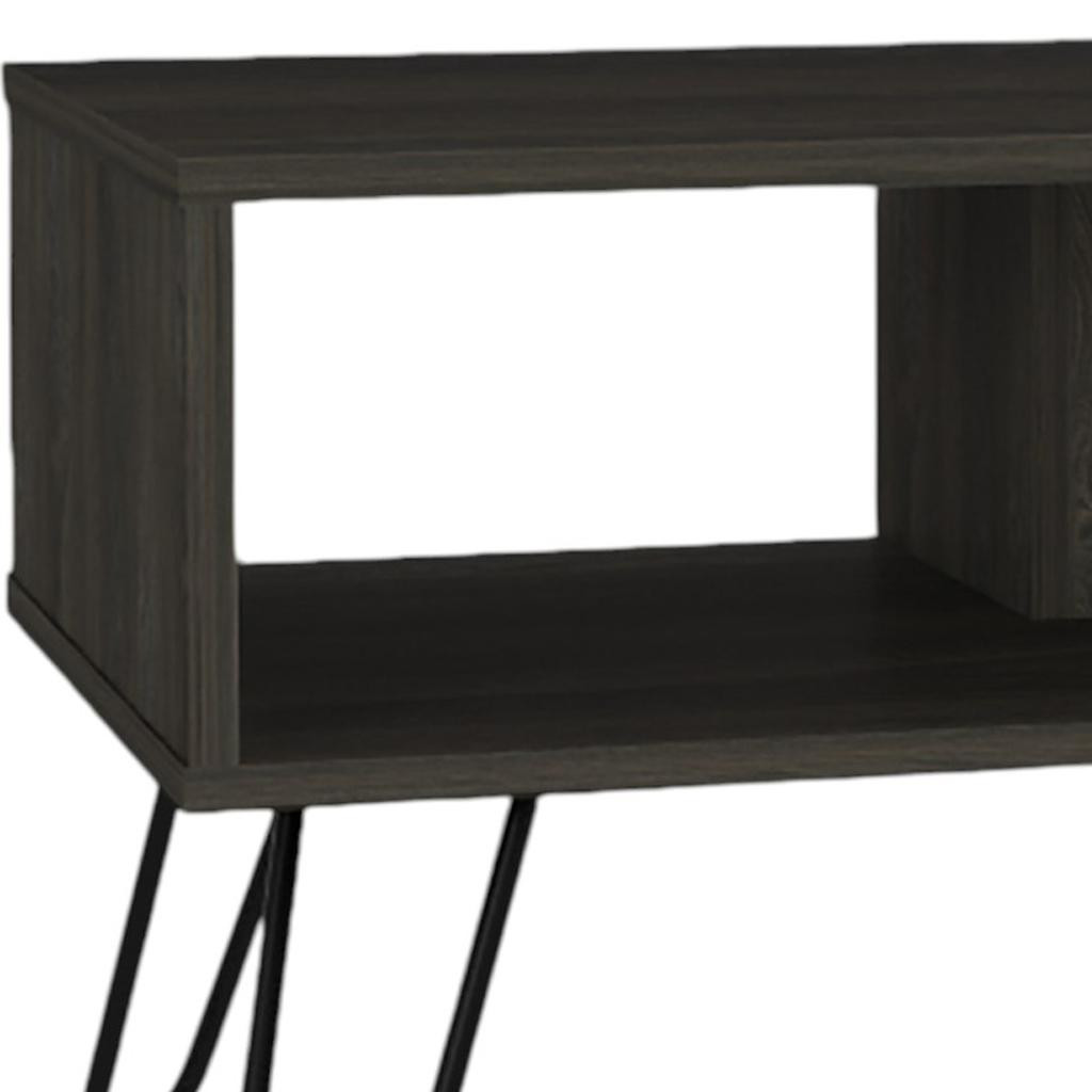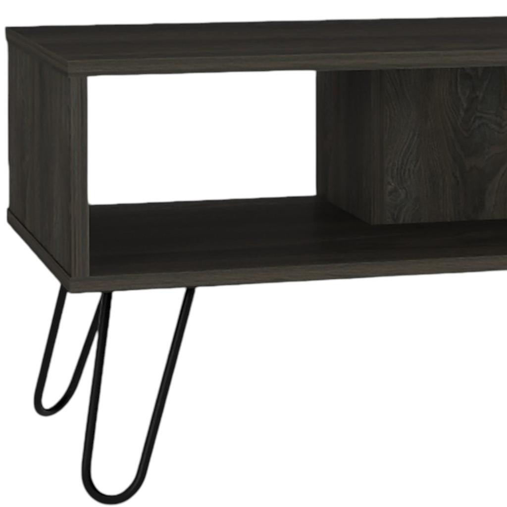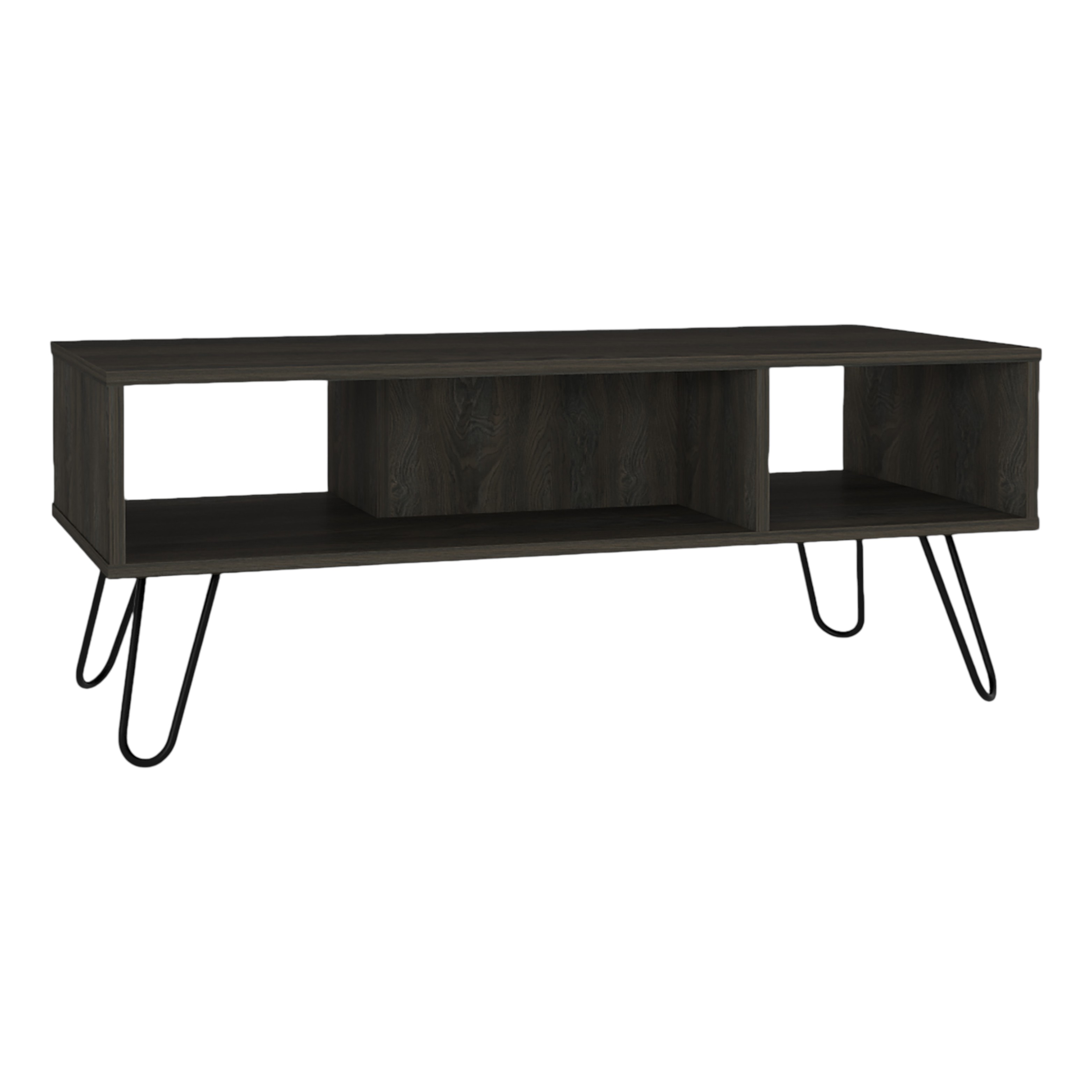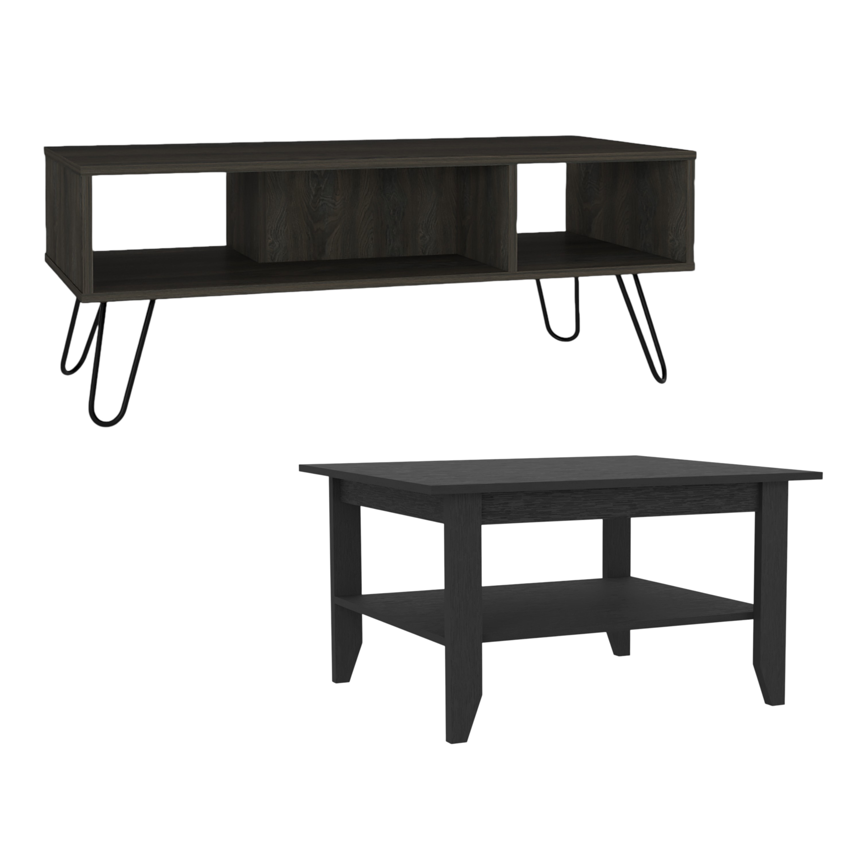 Made of manufactured wood, the black and espresso coloration throughout gives these pieces an updated and refreshing look. The tops of this manufactured wood tables are black and espresso, while the bases are a nice compliment in black and espresso. There are 2 shelves that will help to keep clutter at bay. These classic rectangular tables will be a great accent in any room if you're looking for something that can fit into a living area, bedroom, or office, this coffee table is for you. 17.72-inch h x 31.50-inch w x 27.56-inch d.