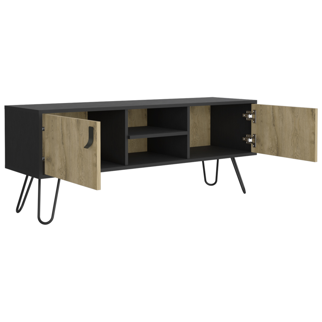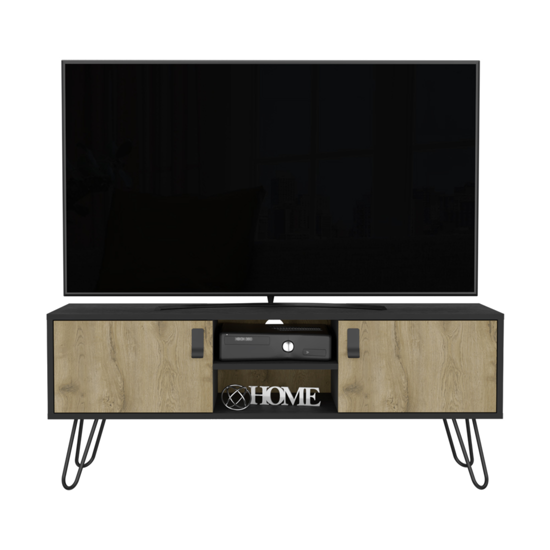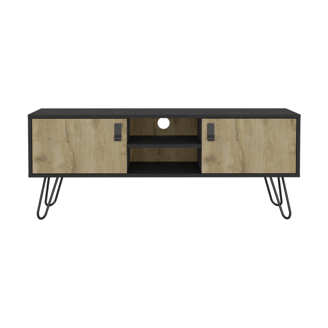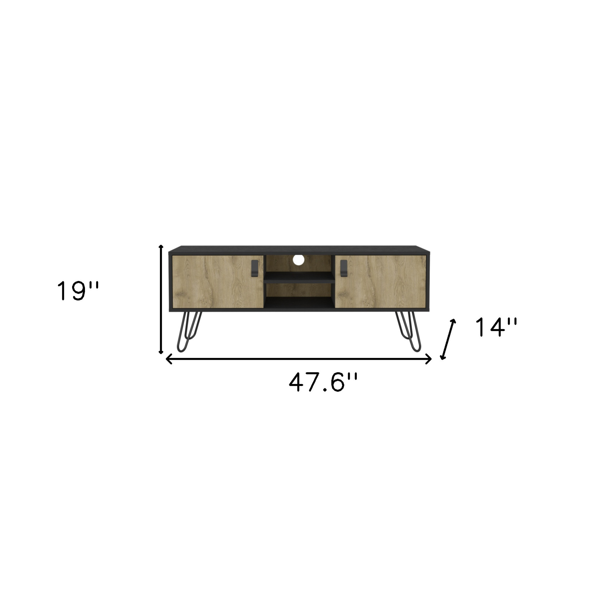 Ready to be enjoyed in your living room, family room, or recreation room, this 48-inch beige and black open and enclosed storage TV stand is a practical and good looking piece of furniture that will help to anchor your room. To add to the versatility, this piece features both concealed and open non-concealed storage that can be used for not only storage but display as well. Convert your room into a special place with your favorite collectibles and tv accessories that is suitable for living room, bedroom, or office. 19-inch H x 47.6-inch W x 14-inch D