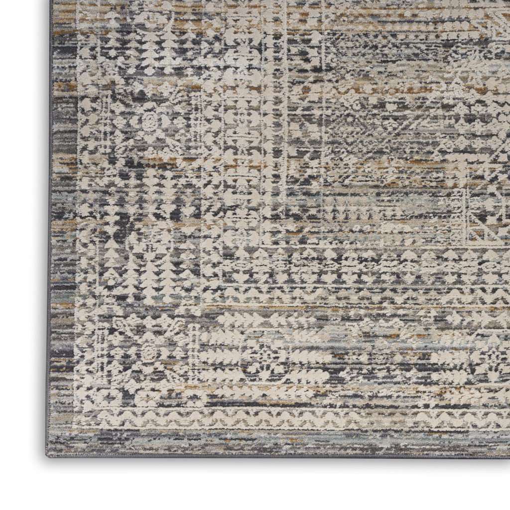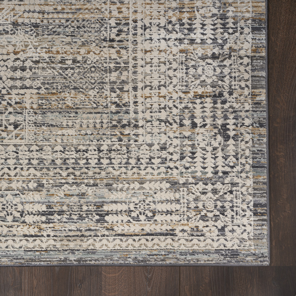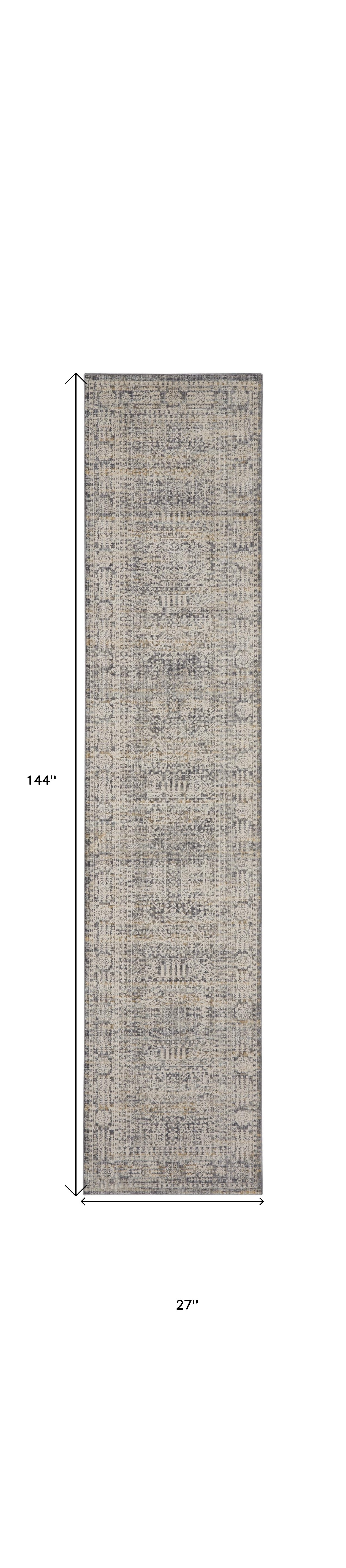Add some artistry to your room with this 12-foot ivory and slate gray oriental distressed runner rug with fringe. Built to last, this rug crafted from polyester and polypropylene fibers is known for its durability and long lasting appeal. Rugs are a great way to showcase your style, hide imperfections, warm your home and reduce noise. This rectangular shaped rug features a abstract design that will add a functional and decorative accent to your space. Tassel ends bring a timeless and fashionable look to your interior. This bohemian style runner makes a great accent for the hallway, in front of cabinets, in the laundry room, or any other space you need a narrow and long rug. 27-inch h x 144-inch w x 0.25-inch d.