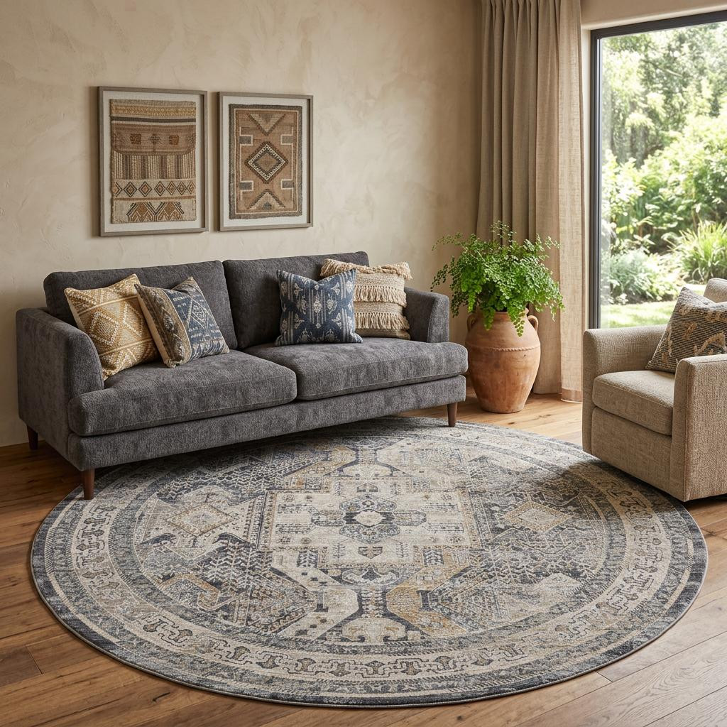 charcoal medallion distressed round rug, medallion distressed round rug, medallion distressed round rug fringe, distressed round rug fringe, distressed round rug |
