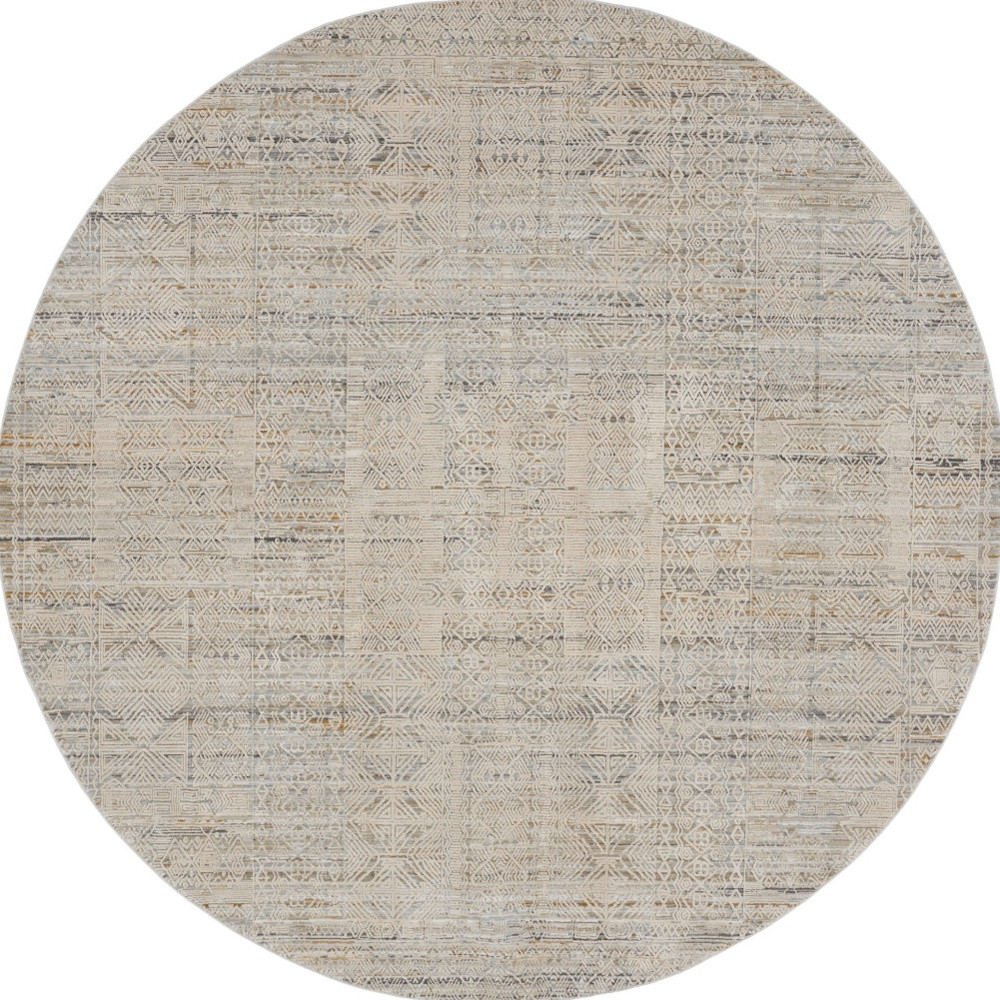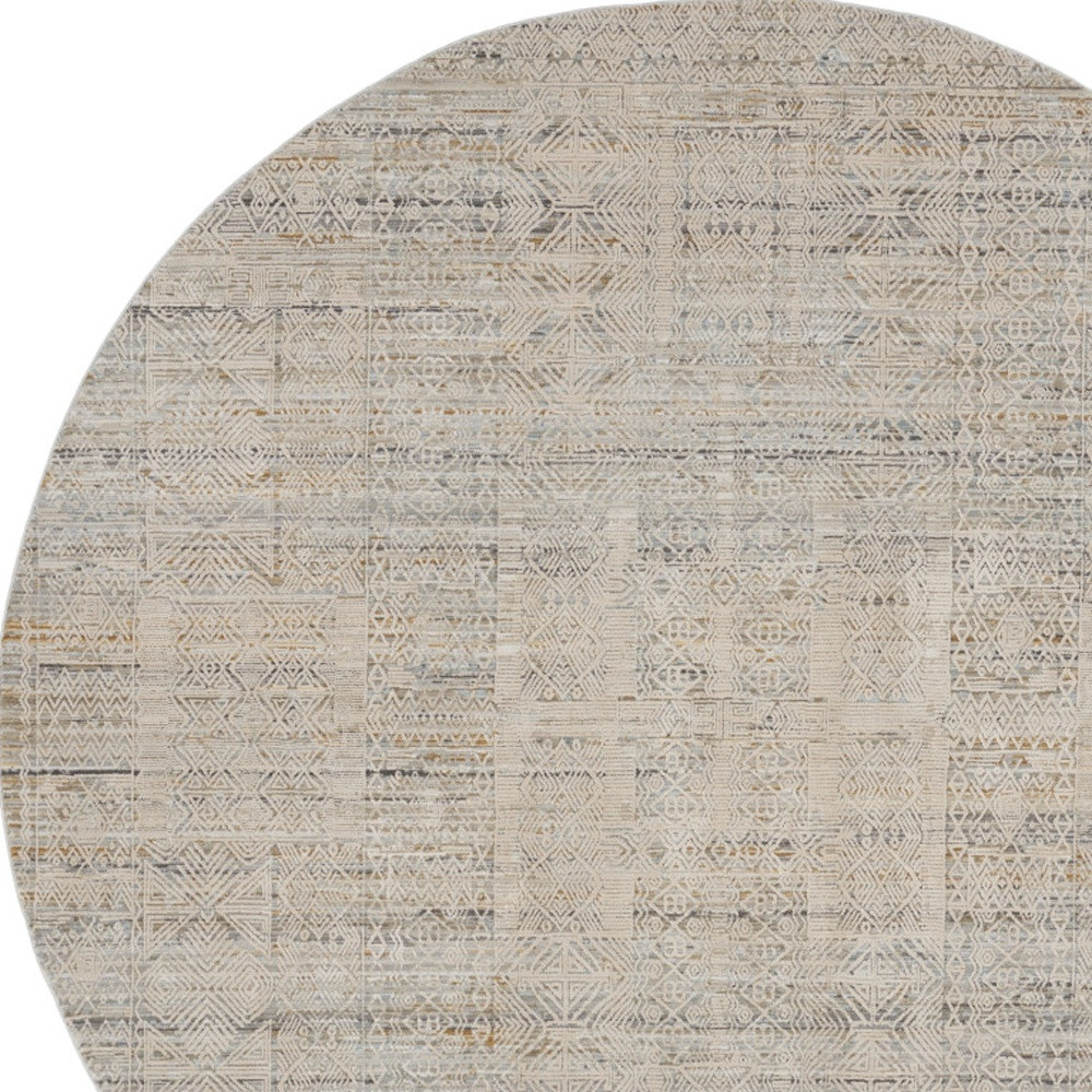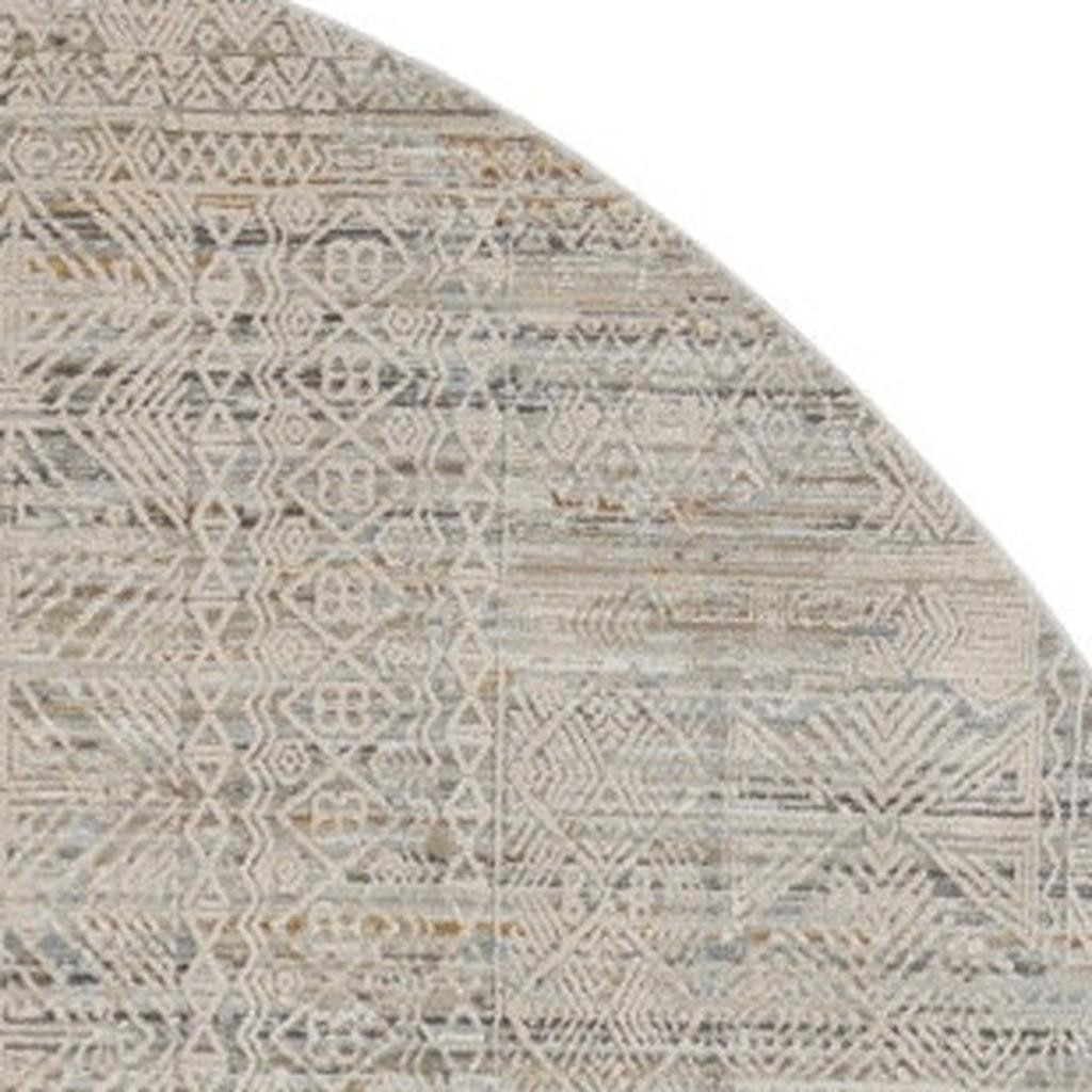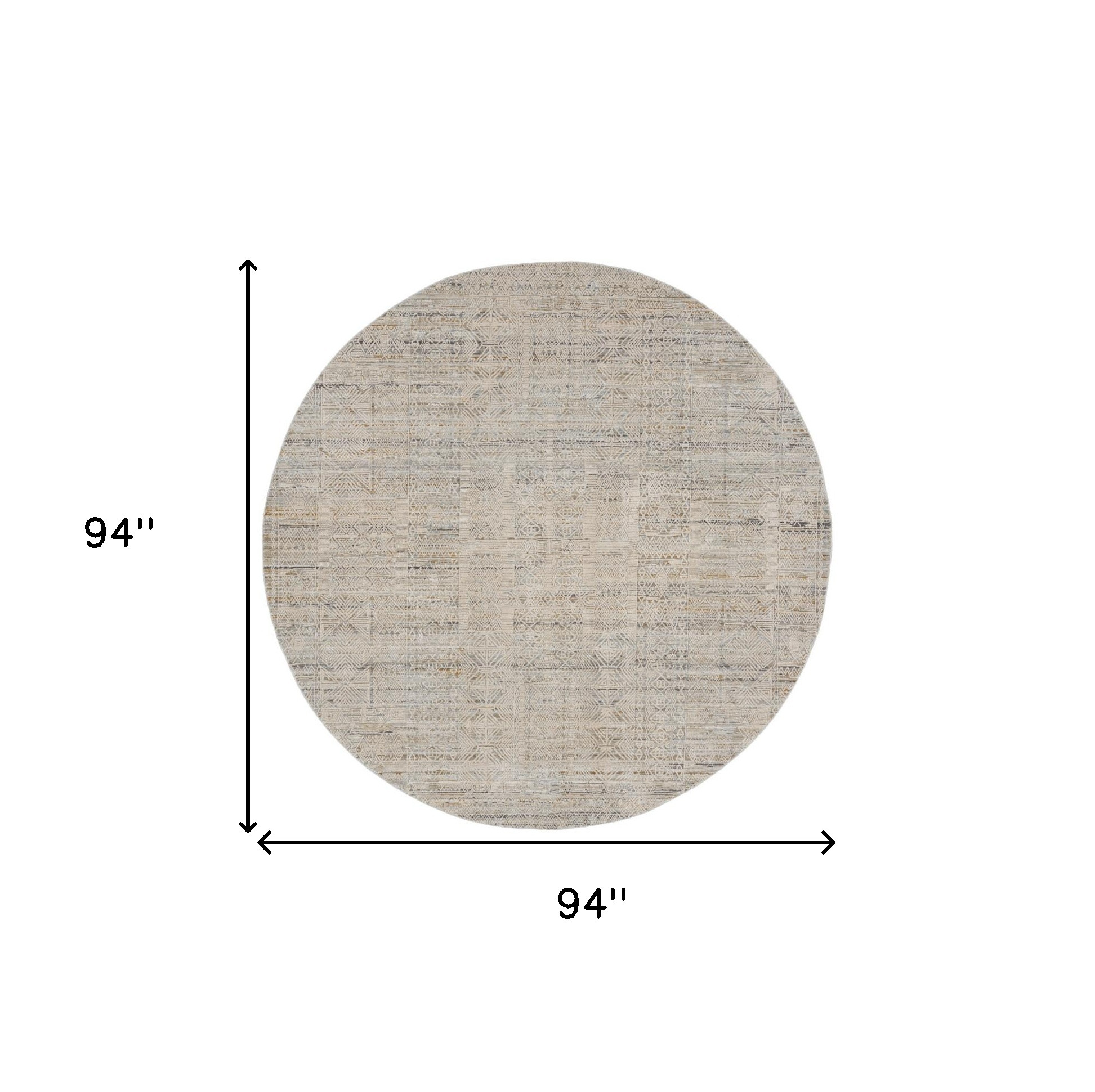 Set an inviting tone in your space with this 8-foot ivory brown and gray geometric distressed round rug with fringe. Built to last, this rug crafted from polyester and polypropylene fibers is known for its durability and long lasting appeal. Rugs are a great way to showcase your style, hide imperfections, warm your home and reduce noise. This geometric round shaped rug features a geometric pattern in ivory, brown, and gray that combines a good looking print with a unique and updated shape. The mix of shape, color, and design gives this rug refreshing visual interest. Tassel ends bring a timeless and fashionable look to your interior. This larger sized, bohemian styled rug is ready to create a focal point or statement piece in your room. 94-inch h x 94-inch w x 0.25-inch d.