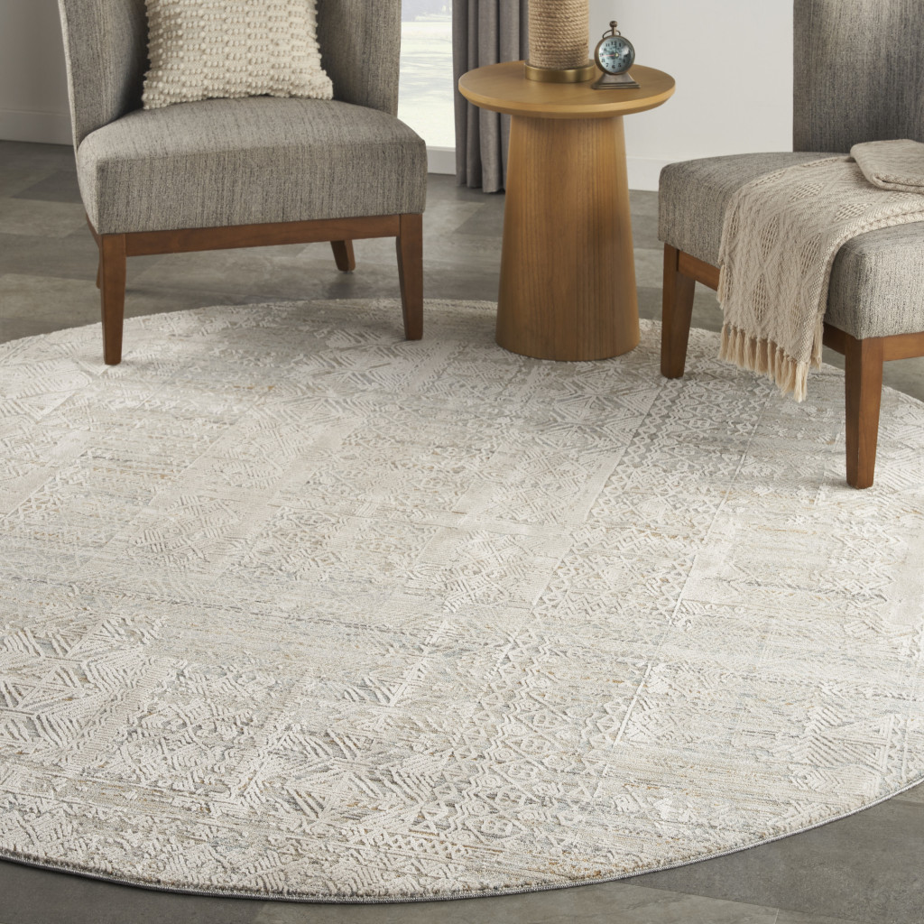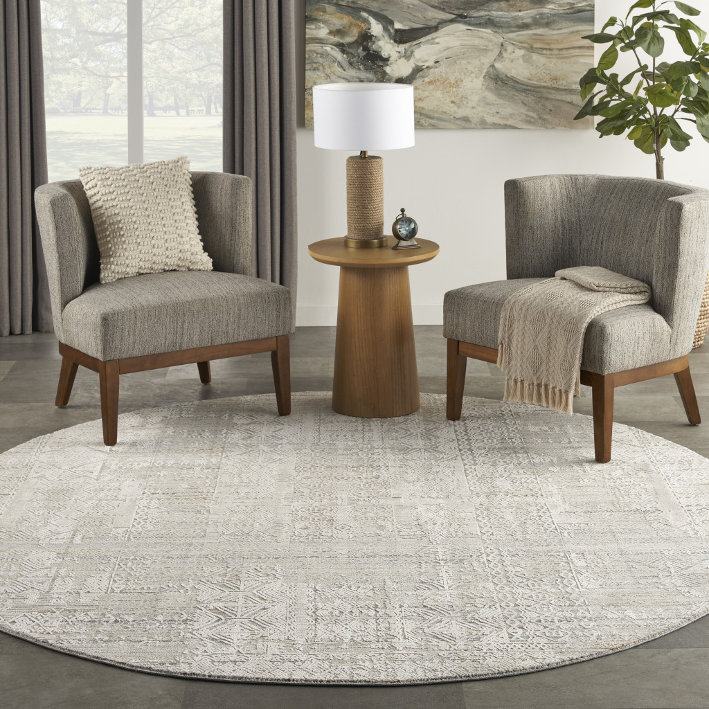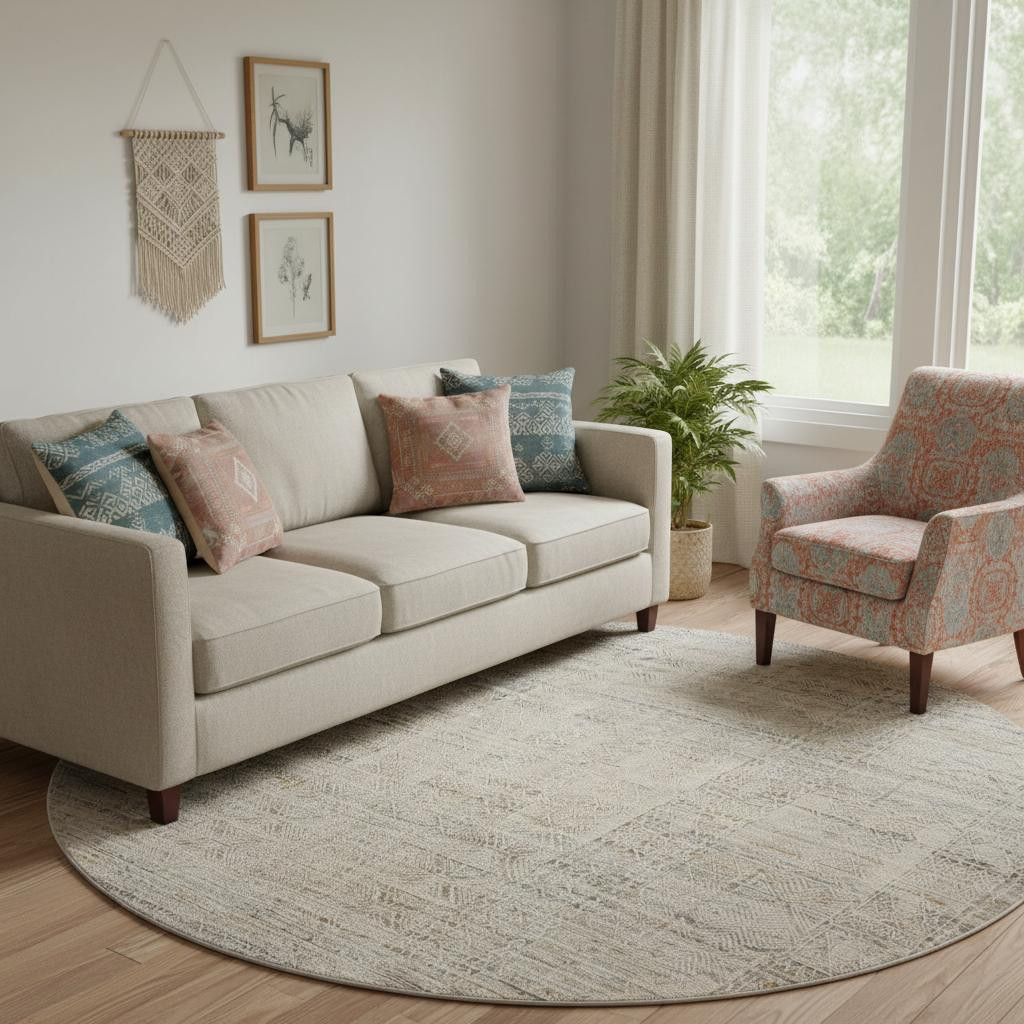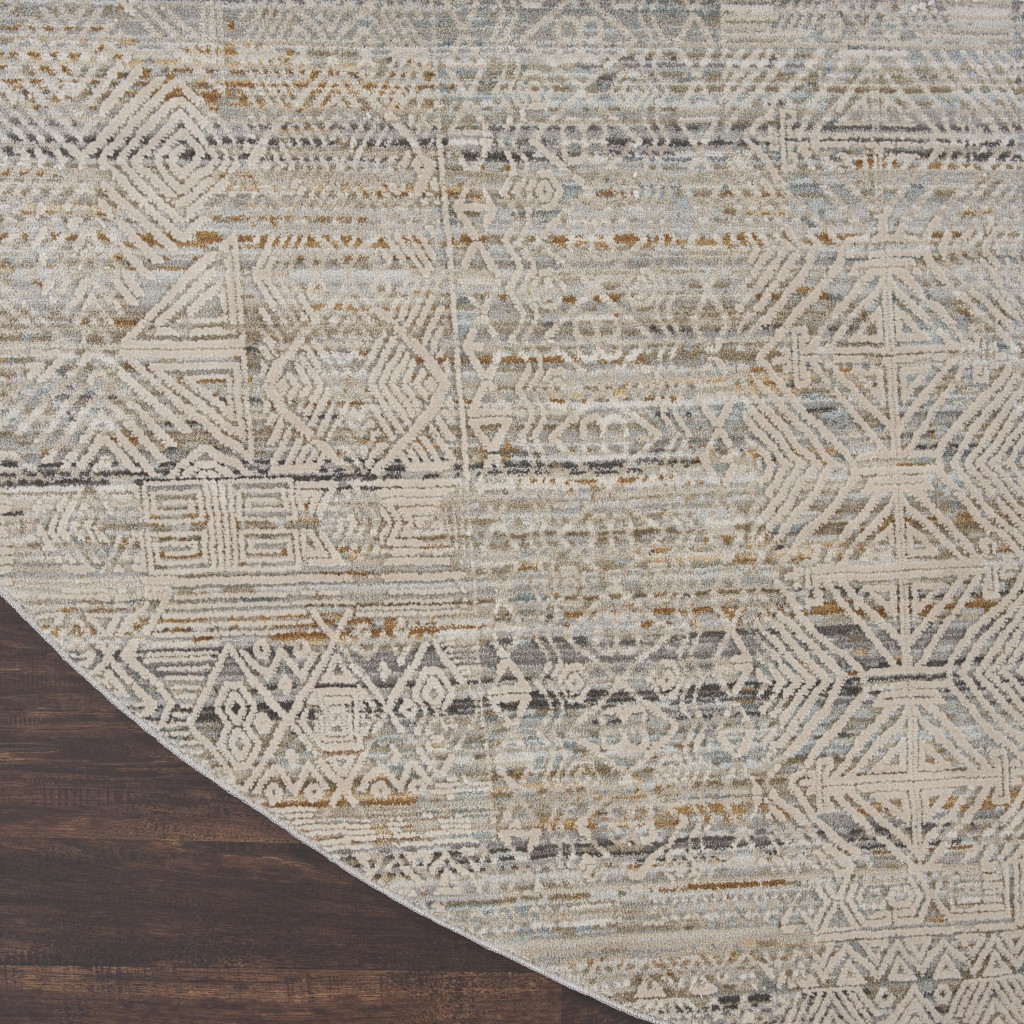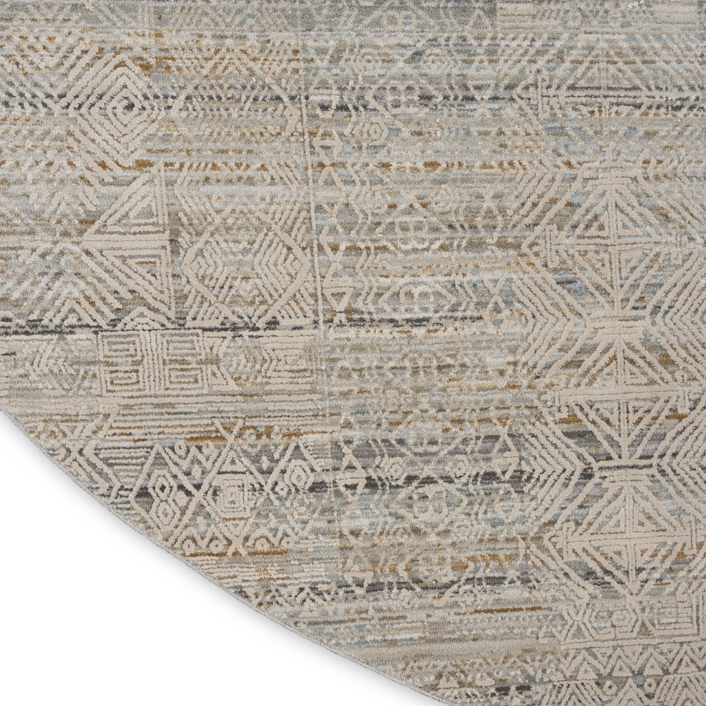 gray geometric distressed round rug, geometric distressed round rug, distressed round rug, distressed round rug fringe, geometric distressed round rug fringe |