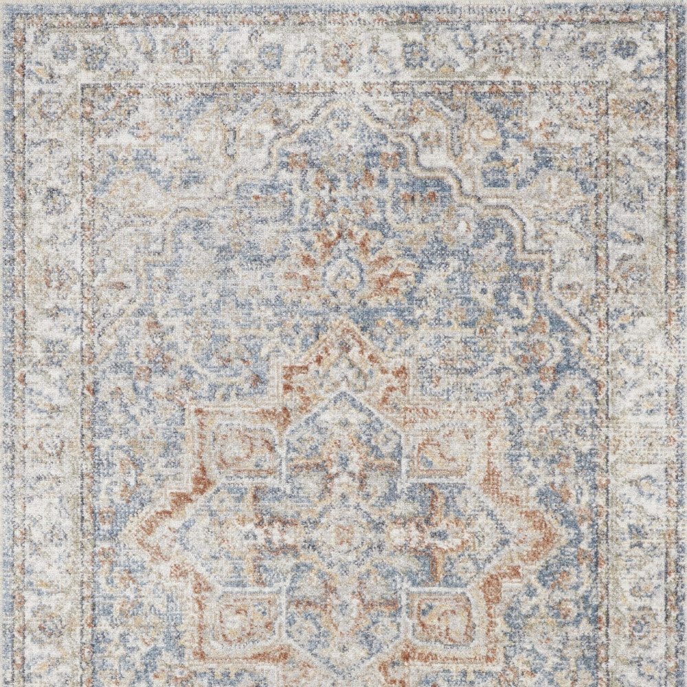 Add great coloration and comfortable texture to your space with this 2-foot x 4-foot blue and orange floral medallion washable area rug. Built to last, this rug crafted from polyester fibers is known for its durability and long lasting appeal. Rugs are a great way to showcase your style, hide imperfections, warm your home and reduce noise. This smaller sized, bohemian styled rug is just what you need for your walkway, bedside, in front of door, cabinet, refrigerator, or chair. 26-inch h x 48-inch w x 0.25-inch d.