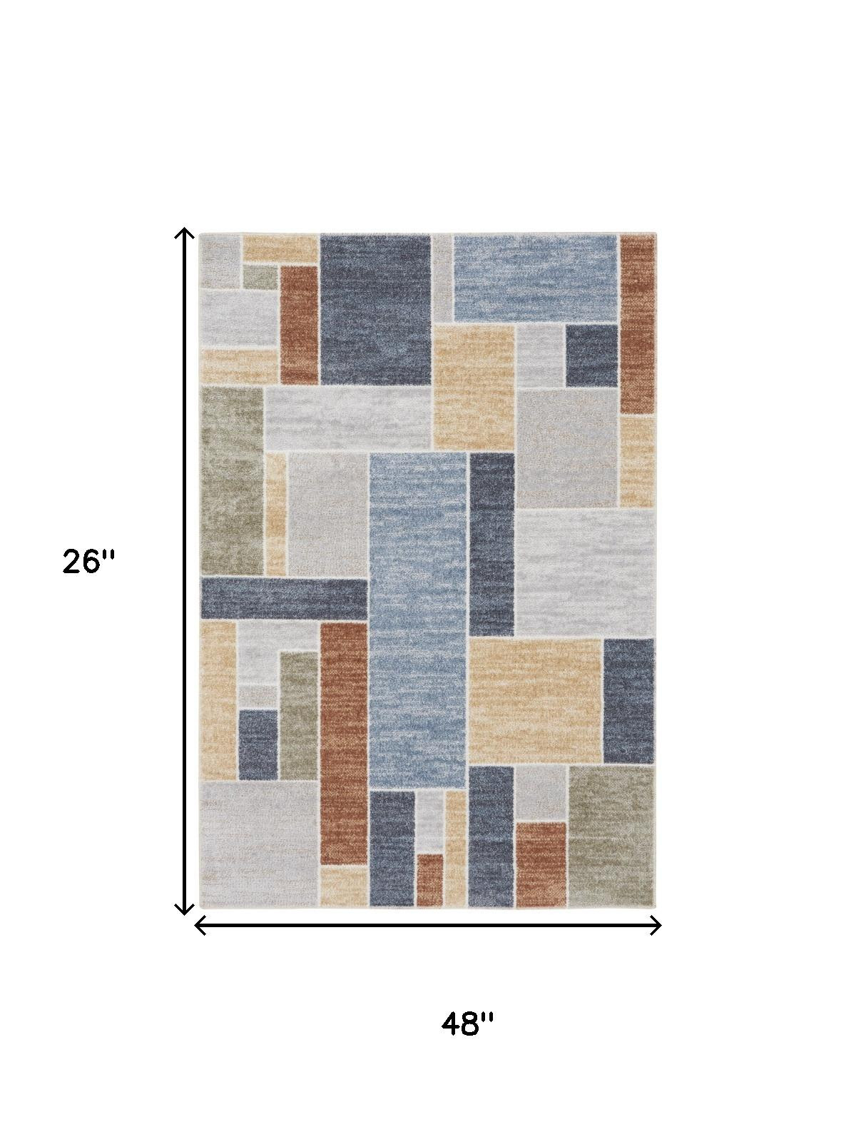 Add some artistry to your room with this 2-foot x 4-foot blue geometric washable area rug. Built to last, this rug crafted from polyester fibers is known for its durability and long lasting appeal. Rugs are a great way to showcase your style, hide imperfections, warm your home and reduce noise. This smaller sized, contemporary styled rug is just what you need for your walkway, bedside, in front of door, cabinet, refrigerator, or chair. 26-inch h x 48-inch w x 0.25-inch d.