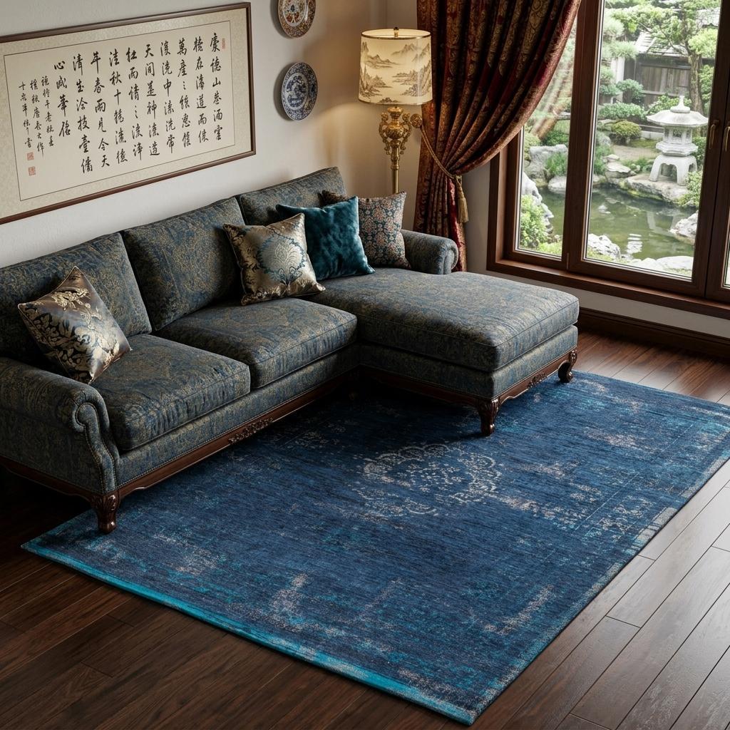 This 8-foot x 11-foot blue and gray medallion non skid area rug, is a great way to add warmth to a room. This rectangle shaped rug features a medallion design that will add a functional and decorative accent to your space. This larger sized rug is ideal to create a focal point or statement piece in your room. 84-inch h x 132-inch w x 0.12-inch d