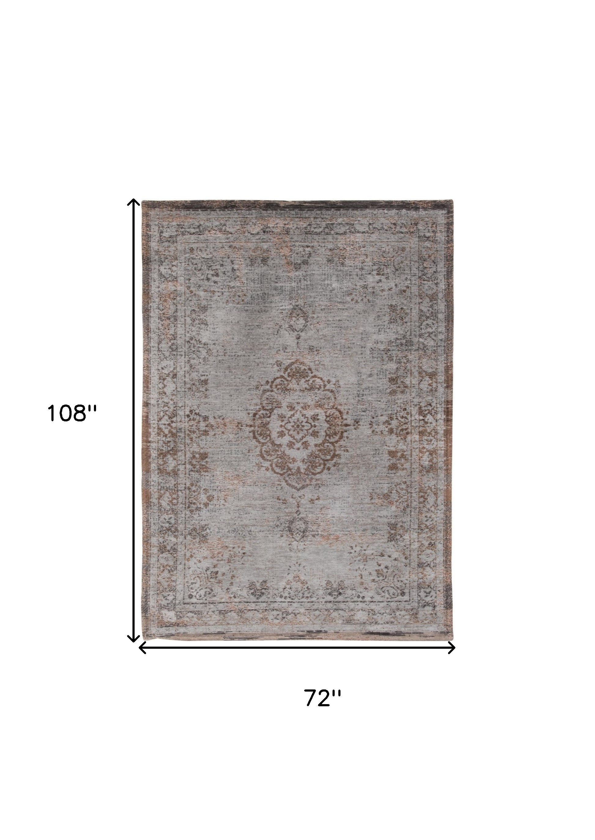 Set an inviting tone in your space with this 7-foot x 9-foot gray and beige medallion non skid area rug. This rectangle shaped rug features a medallion design that will add a functional and decorative accent to your space. This larger sized rug is ideal to create a focal point or statement piece in your room. 72-inch h x 108-inch w x 0.12-inch d