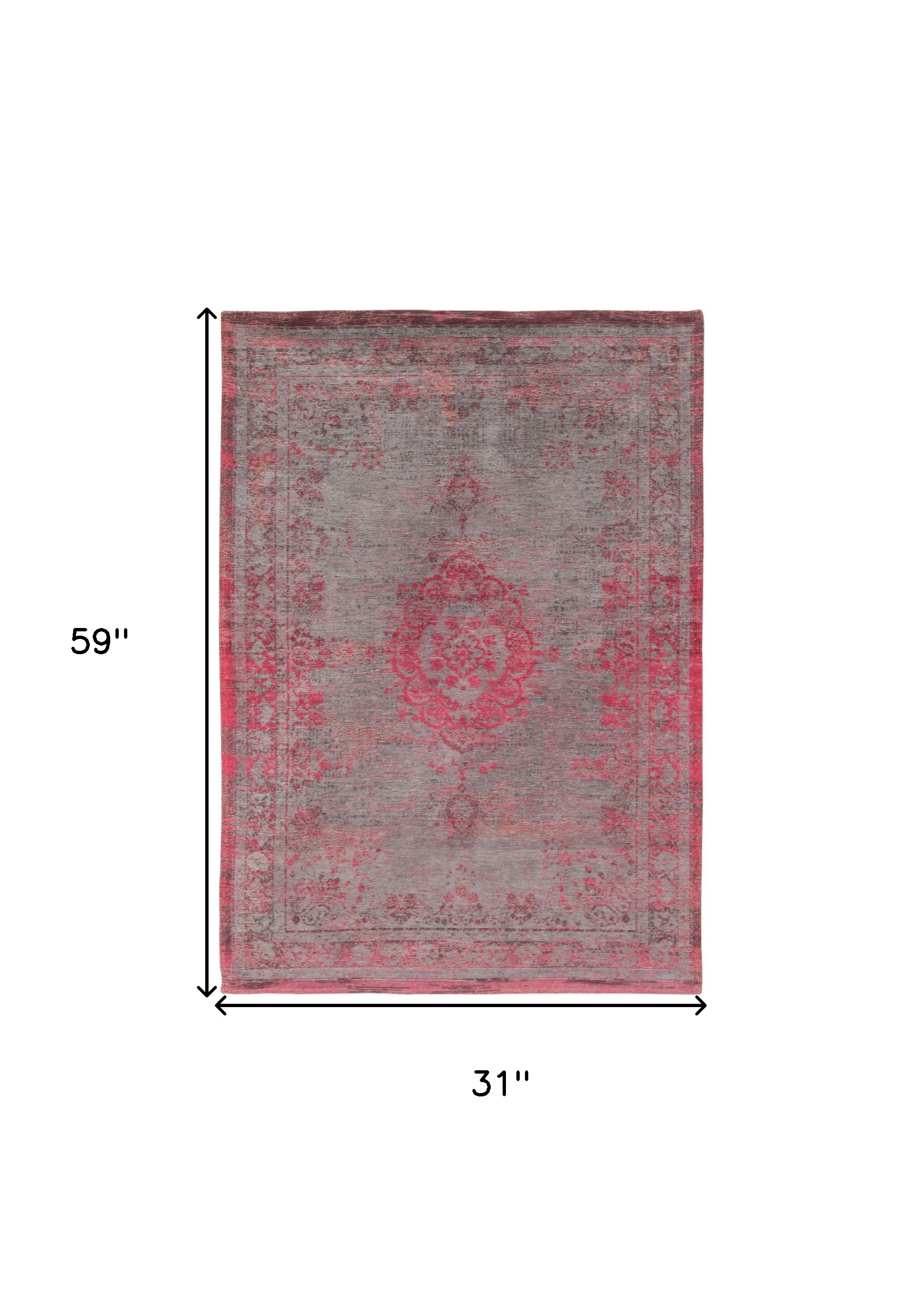 Add great coloration and comfortable texture to your space with this 3-foot x 5-foot gray and pink medallion non skid area rug. This rectangle shaped rug features a medallion design that will add a functional and decorative accent to your space. This smaller sized rug is just what you need for your walkway, or in front of door, cabinet, refrigerator, or chair. 31-inch h x 59-inch w x 0.12-inch d