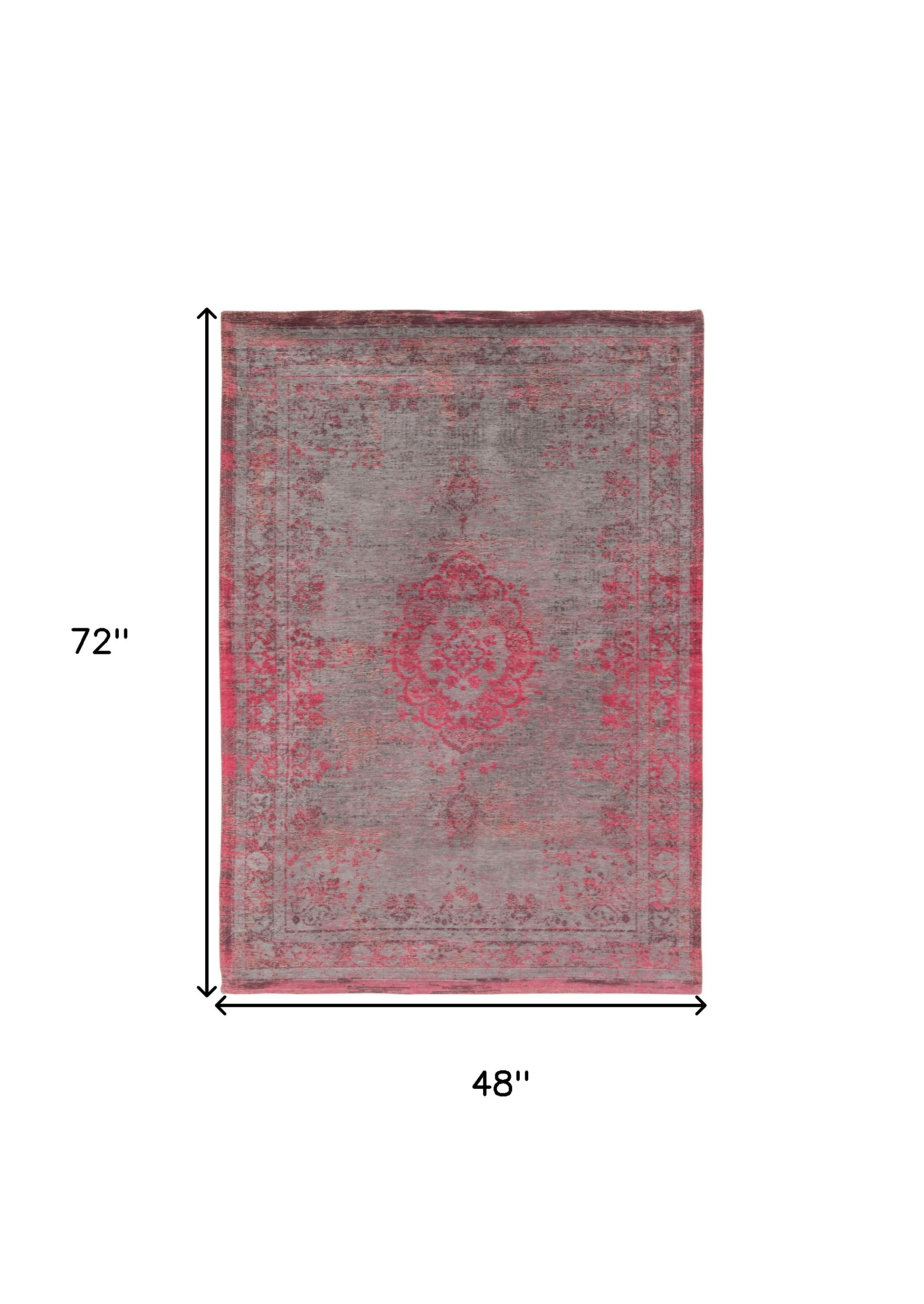 Add great coloration and comfortable texture to your space with this 5-foot x 7-foot gray and pink medallion non skid area rug. This rectangle shaped rug features a medallion design that will add a functional and decorative accent to your space. This smaller sized rug is just what you need for your walkway, or in front of door, cabinet, refrigerator, or chair. 48-inch h x 72-inch w x 0.12-inch d