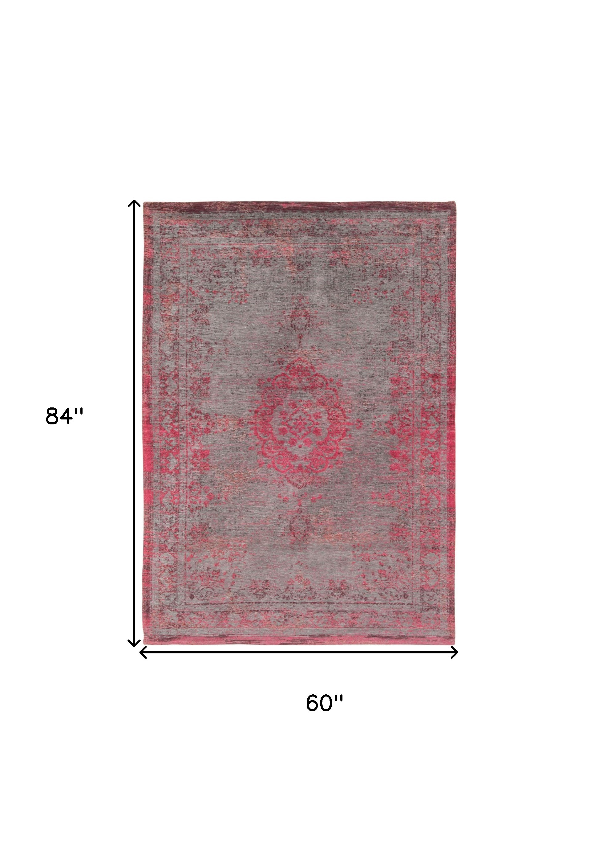 Add great coloration and comfortable texture to your space with this 6-foot x 8-foot gray and pink medallion non skid area rug. This rectangle shaped rug features a medallion design that will add a functional and decorative accent to your space. This larger sized rug is ideal to create a focal point or statement piece in your room. 60-inch h x 84-inch w x 0.12-inch d
