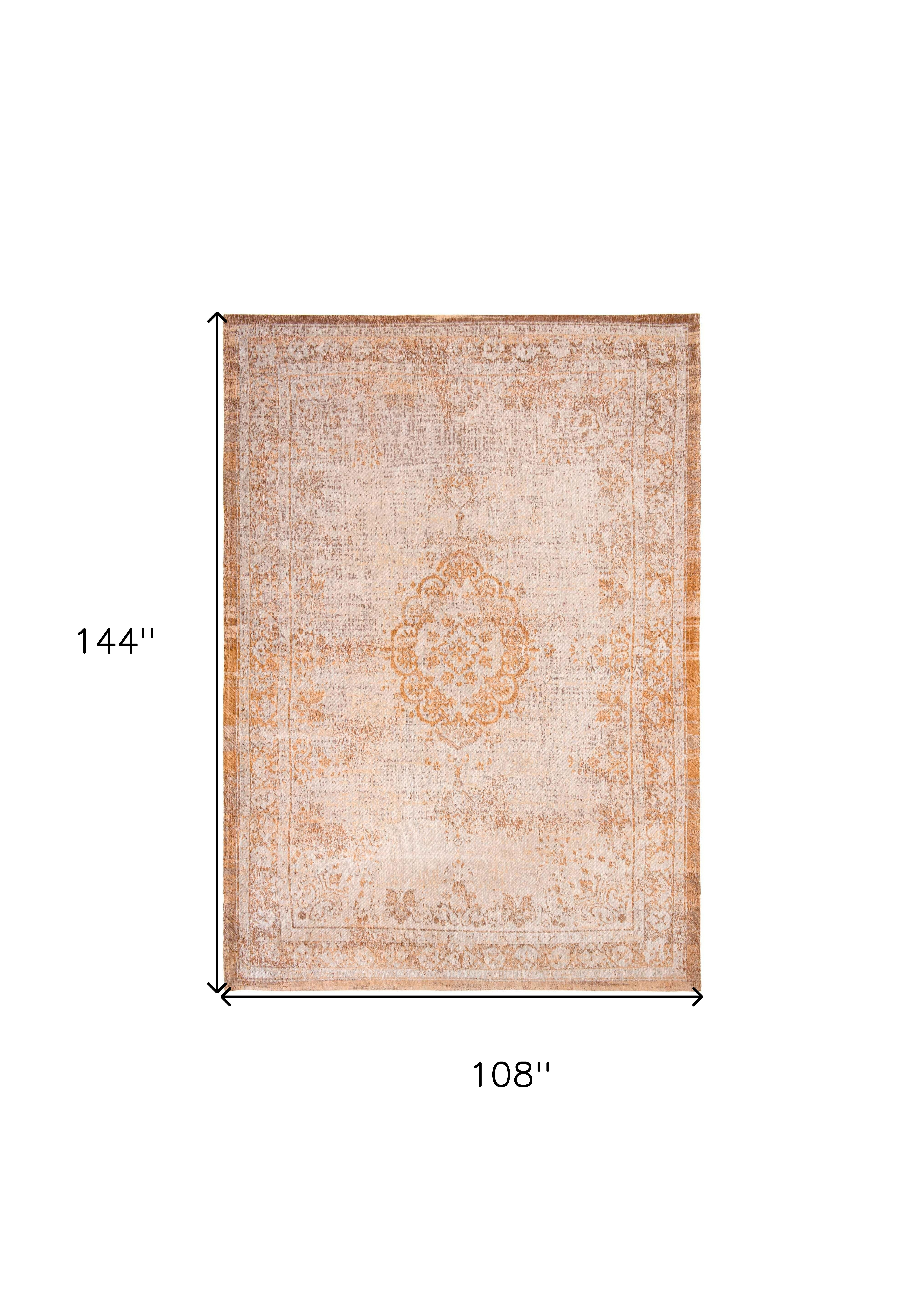 Add great coloration and comfortable texture to your space with this 9-foot x 13-foot orange and white medallion ,washable, area rug. Crafted from eco-friendly 100% pet fibers that are made from recycled water bottles and other biodegradable items to give this rug a comfortable feel, stain resistance and the added benefit of reducing waste in our landfills. Rugs are a great way to showcase your style, hide imperfections, warm your home and reduce noise. This larger sized, oriental styled rug is ready to create a focal point or statement piece in your room. 108-inch h x 144-inch w x 0.12-inch d.