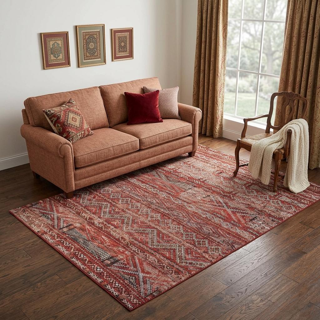 This 6-foot x 8-foot red and gray oriental non skid area rug, is a great way to add warmth to a room. This rectangle shaped rug features a oriental design that will add a functional and decorative accent to your space. This larger sized rug is ideal to create a focal point or statement piece in your room. 60-inch h x 84-inch w x 0.12-inch d