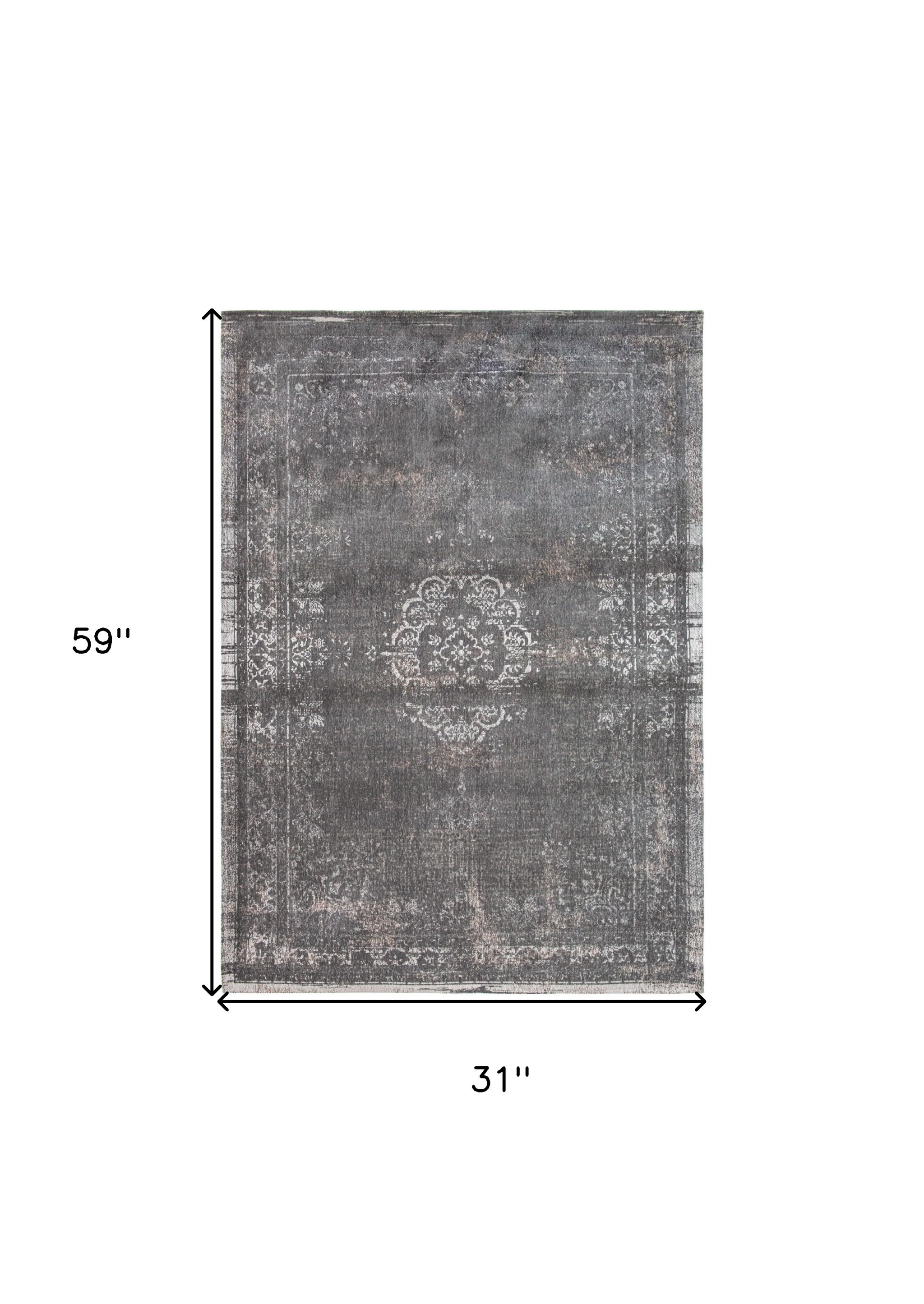Add some artistry to your room with this 3-foot x 5-foot gray medallion non skid area rug. This rectangle shaped rug features a medallion design that will add a functional and decorative accent to your space. This smaller sized rug is just what you need for your walkway, or in front of door, cabinet, refrigerator, or chair. 31-inch h x 59-inch w x 0.12-inch d