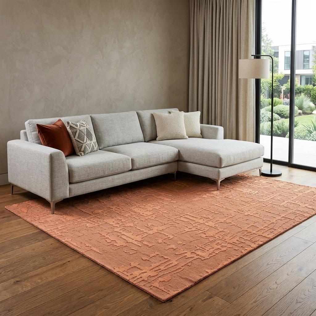 This 8-foot x 11-foot orange abstract non skid area rug, is a great way to add warmth to a room. This rectangle shaped rug features a abstract design that will add a functional and decorative accent to your space. This larger sized rug is ideal to create a focal point or statement piece in your room. 84-inch h x 132-inch w x 0.2-inch d