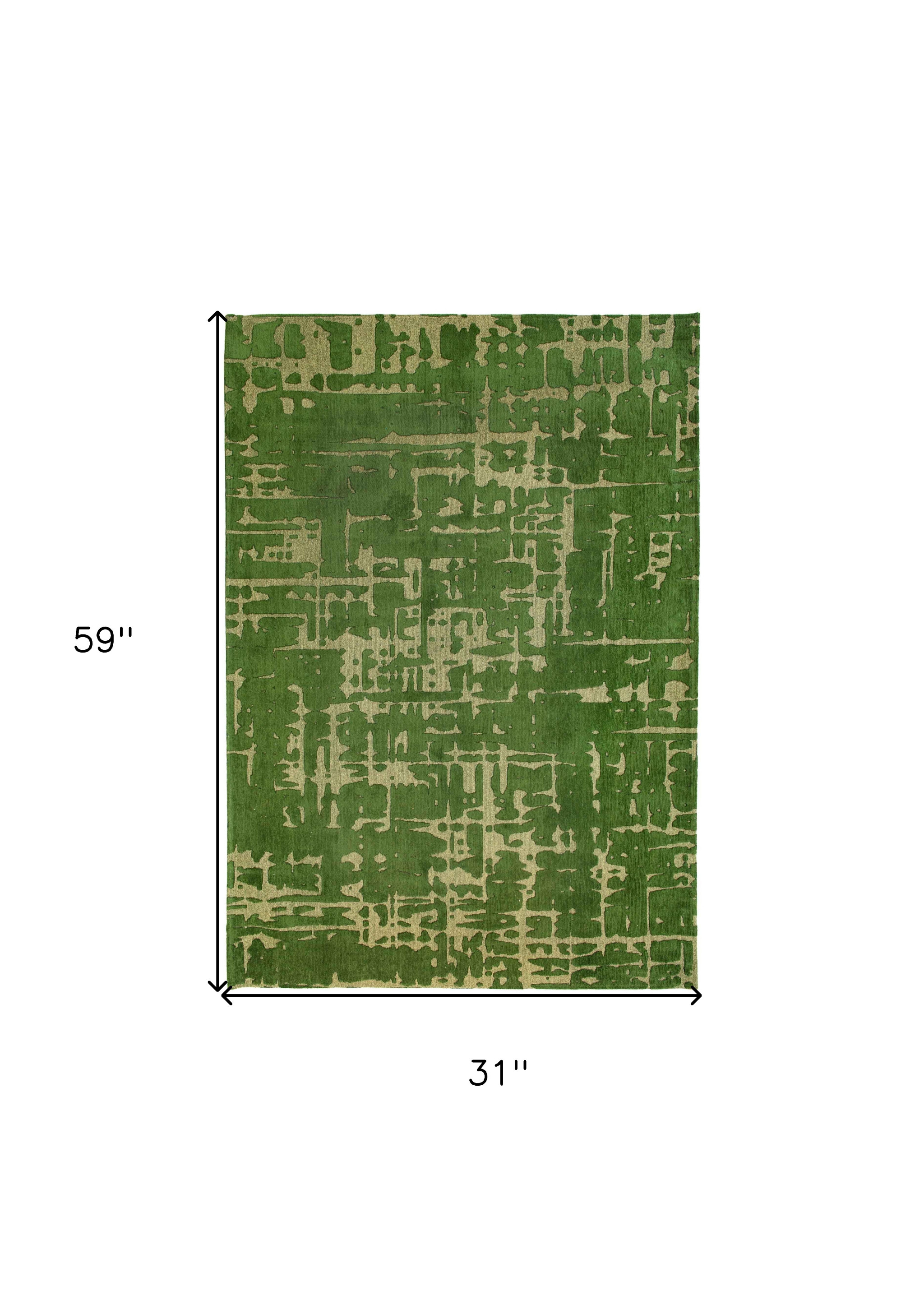 This 3-foot x 5-foot green abstract non skid area rug, is a great way to add warmth to a room. This rectangle shaped rug features a abstract design that will add a functional and decorative accent to your space. This smaller sized rug is just what you need for your walkway, or in front of door, cabinet, refrigerator, or chair. 31-inch h x 59-inch w x 0.2-inch d