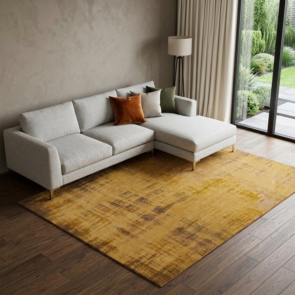 Add great coloration and comfortable texture to your space with this 7-foot x 9-foot yellow and brown abstract non skid area rug. This rectangle shaped rug features a abstract design that will add a functional and decorative accent to your space. This larger sized rug is ideal to create a focal point or statement piece in your room. 72-inch h x 108-inch w x 0.12-inch d