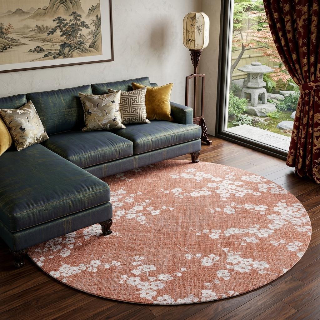 Set an inviting tone in your space with this 9-foot x 13-foot red and white round oriental non skid area rug. This geometric round shaped rug features a oriental pattern in red and white that combines a good looking print with a unique and updated shape. The mix of shape, color, and design gives this rug refreshing visual interest. This smaller sized rug is just what you need for your walkway, or in front of door, cabinet, refrigerator, or chair. 48-inch h x 48-inch w x 0.12-inch d