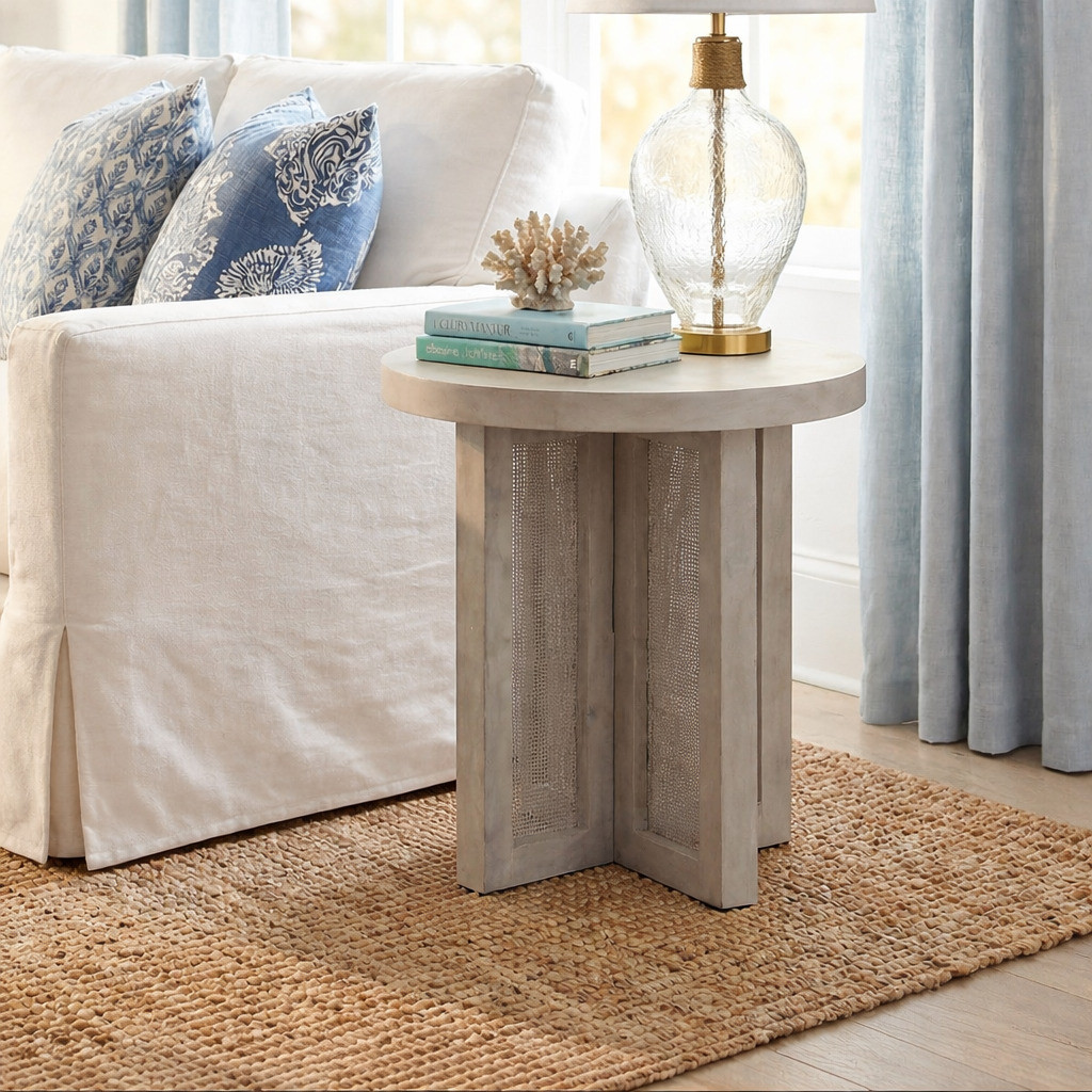 Show off your exquisite taste with this 22-inch natural solid wood and rattan round end table. A solid natural rattan frame is finished off with a matching natural solid wood seat, giving this table a chic monotone look. A great accent on either side of the sofa or bed, this adorable end or side table is just what you need. This versatile table is a great accent for most any room. 22-inch H x 22-inch W x 22-inch D