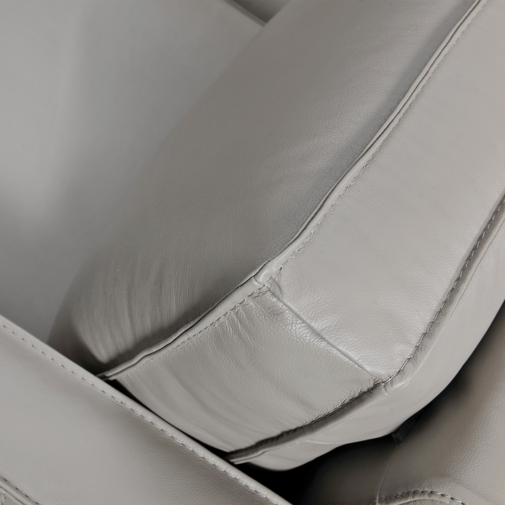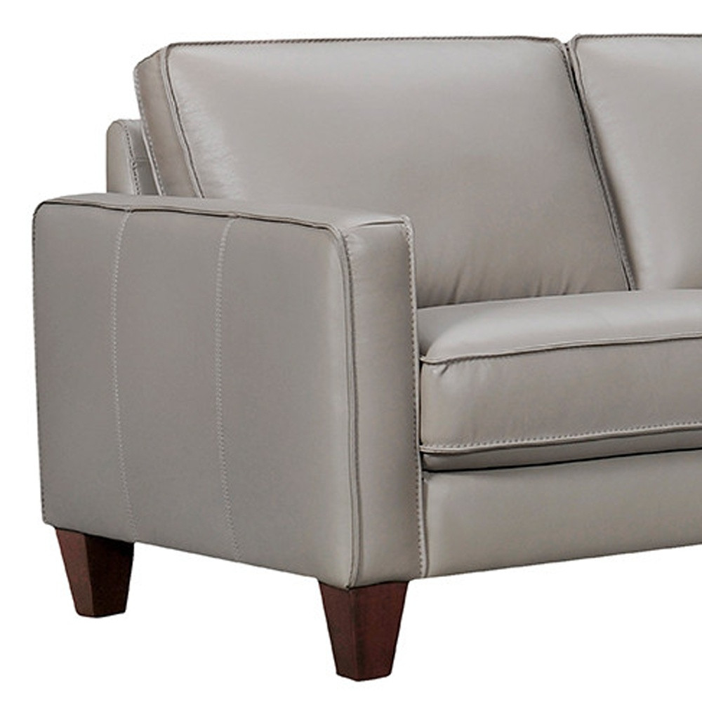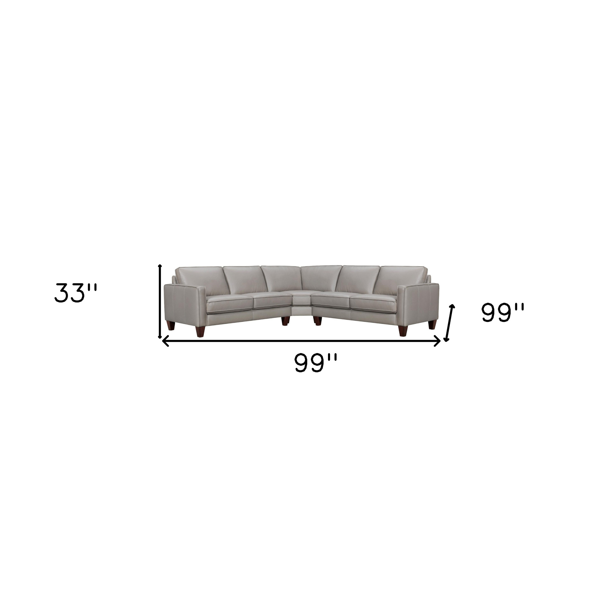 Made of the highest quality, supple leather, this gray leather l shaped three piece corner sectional will be the star of your space. The high-grade premium leather used makes your lounging luxuriously comfortable and adds an elegant appeal to your space. Solid colors give you lots of decorative options and are easy to work into your decor scheme. Square arms offer a comfy place to rest. A great showpiece for your room, this sectional is a must have. 33-inch H x 99-inch W x 99-inch D