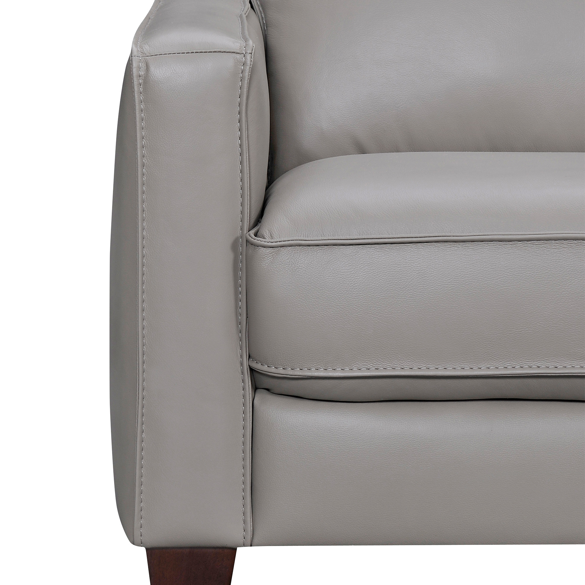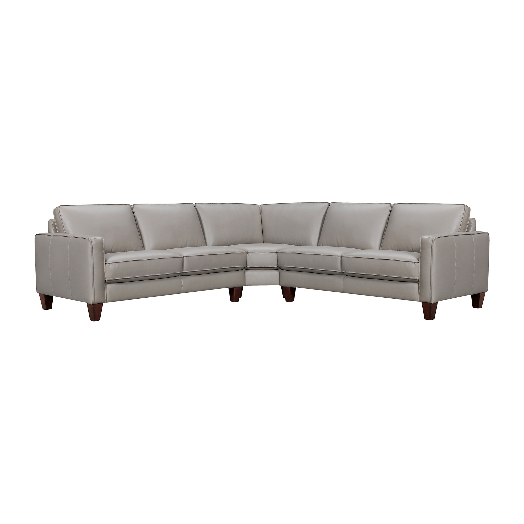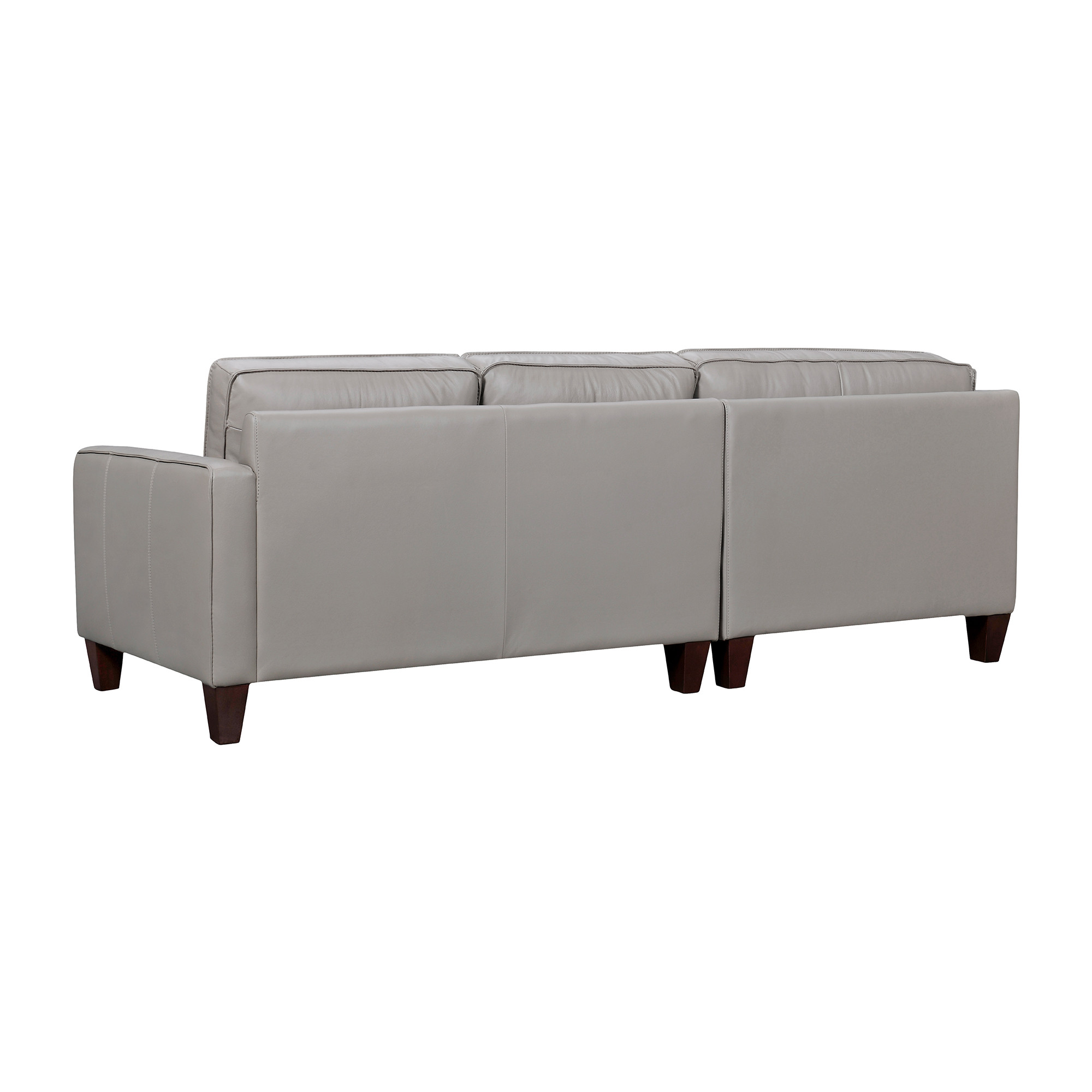 Made of the highest quality, supple leather, this gray leather l shaped three piece corner sectional will be the star of your space. The high-grade premium leather used makes your lounging luxuriously comfortable and adds an elegant appeal to your space. Solid colors give you lots of decorative options and are easy to work into your decor scheme. Square arms offer a comfy place to rest. A great showpiece for your room, this sectional is a must have. 33-inch H x 99-inch W x 99-inch D