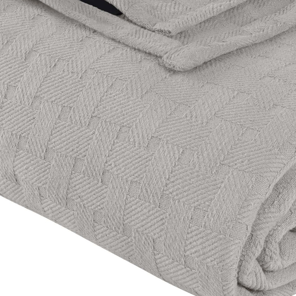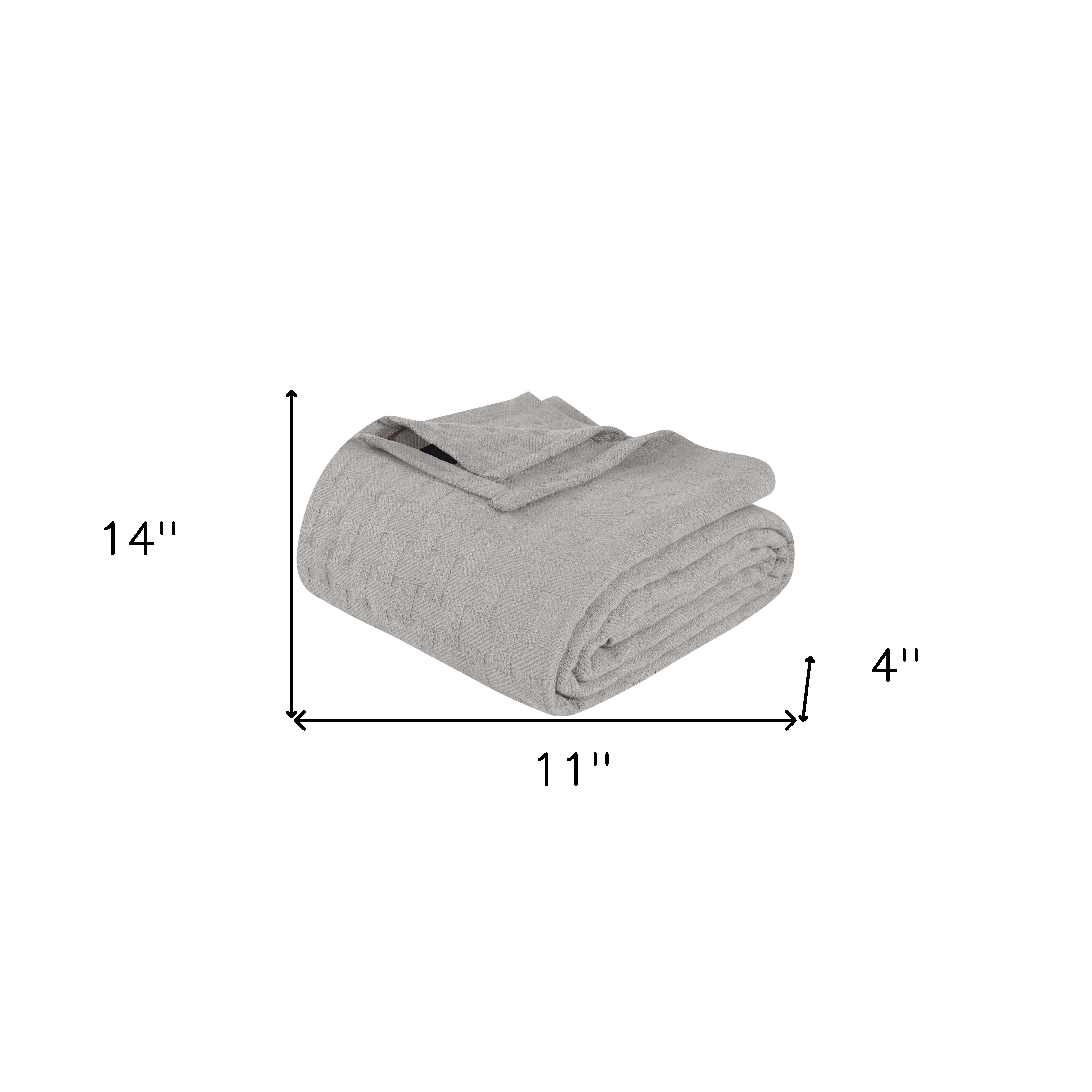 This king silver cotton cable knit blanket is a cozy and stylish addition to your bed ensemble. Super soft, and featuring timeless style, this cotton blanket offers cozy comfort for a good night's sleep all year long. Enhance your space and the quality of your sleep with this soft and comfortable blanket that helps regulate your core body temperature, helps you to relax, and ultimately fall to sleep. 14-inch h x 11-inch w x 4-inch d.