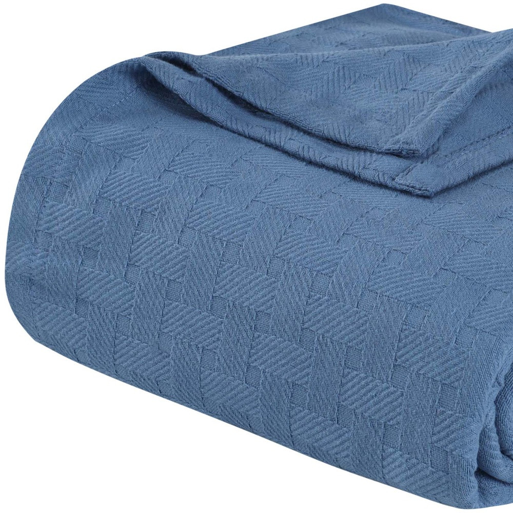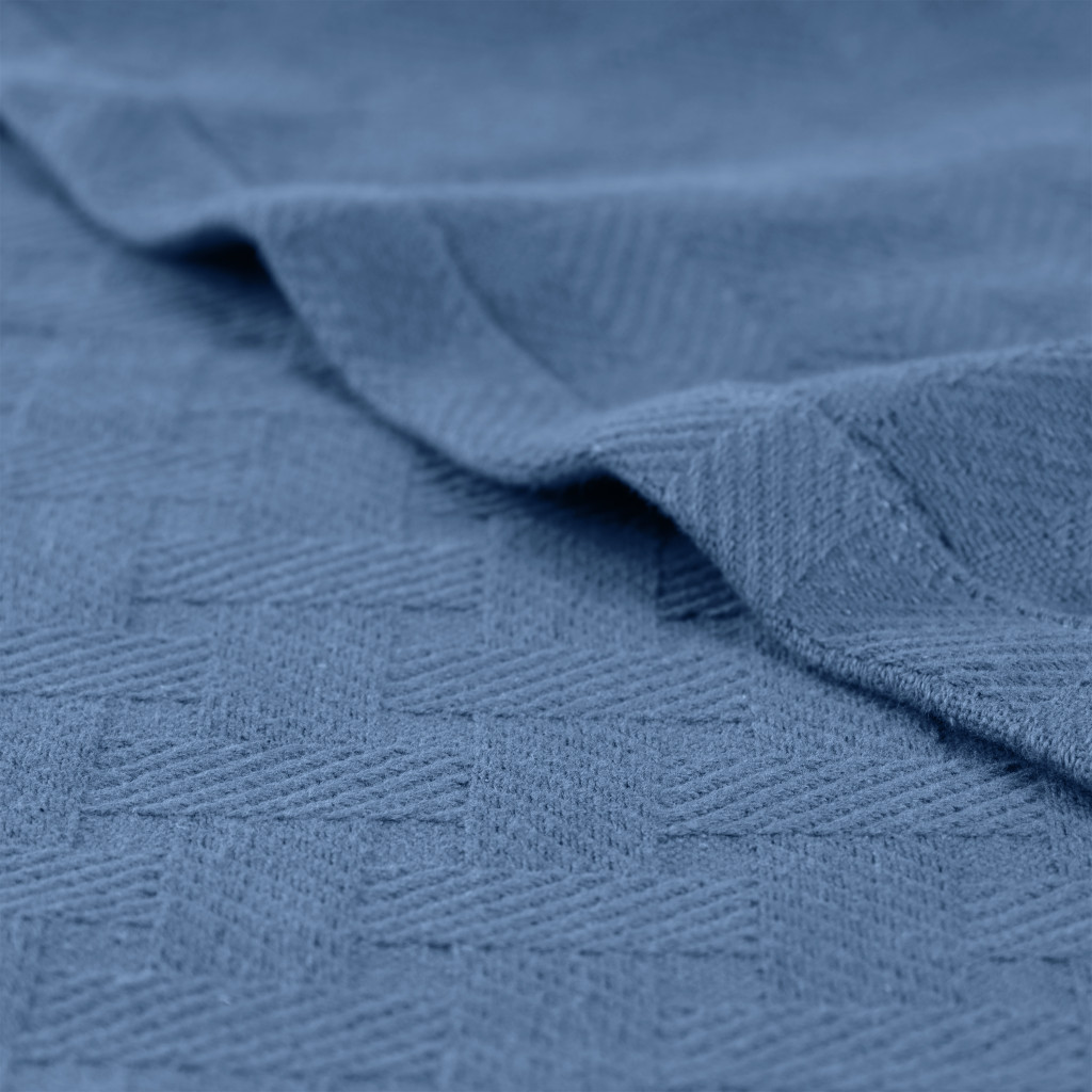 geometric cotton basketweave throw blanket, cotton basketweave throw blanket, basketweave throw blanket, geometric cotton basketweave throw, denim blue geometric cotton basketweave |