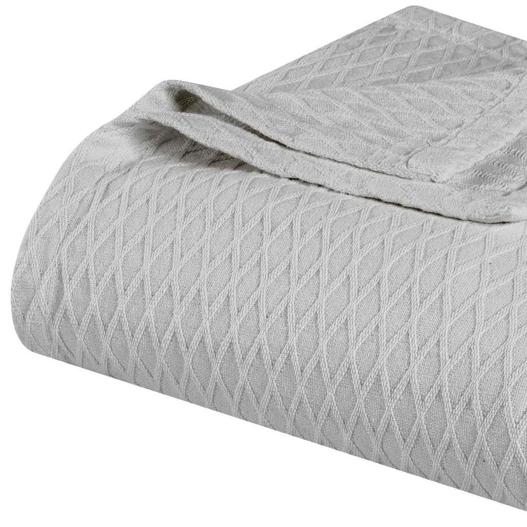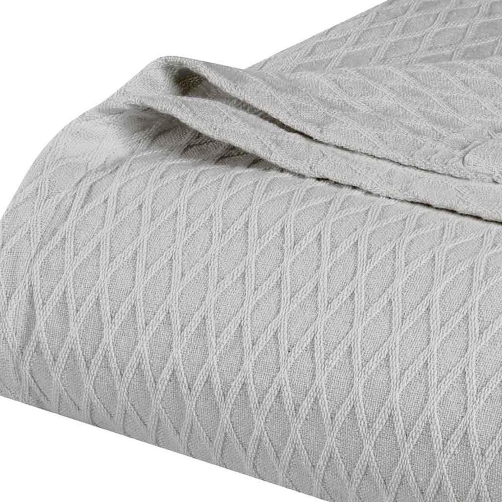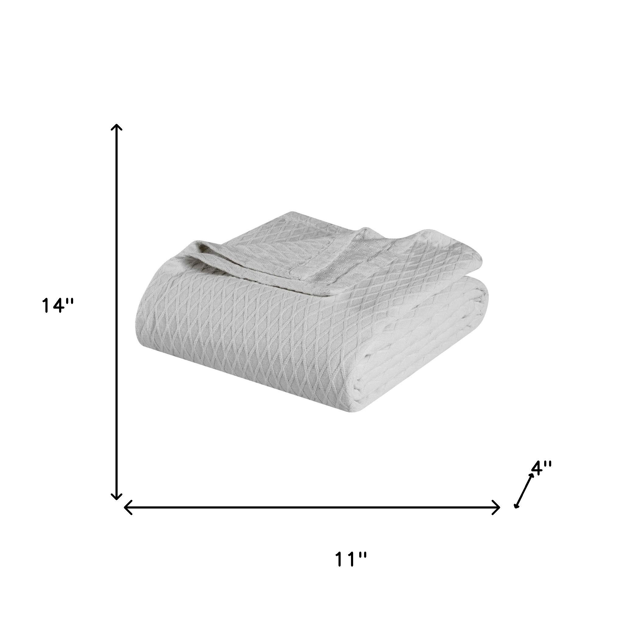 This king platinum geometric cotton woven blanket is a cozy and stylish addition to your bed ensemble. Super soft, and featuring timeless style, this cotton blanket offers cozy comfort for a good night's sleep all year long. Enhance your space and the quality of your sleep with this soft and comfortable blanket that helps regulate your core body temperature, helps you to relax, and ultimately fall to sleep. 14.00-inch h x 11.00-inch w x 4.00-inch d.