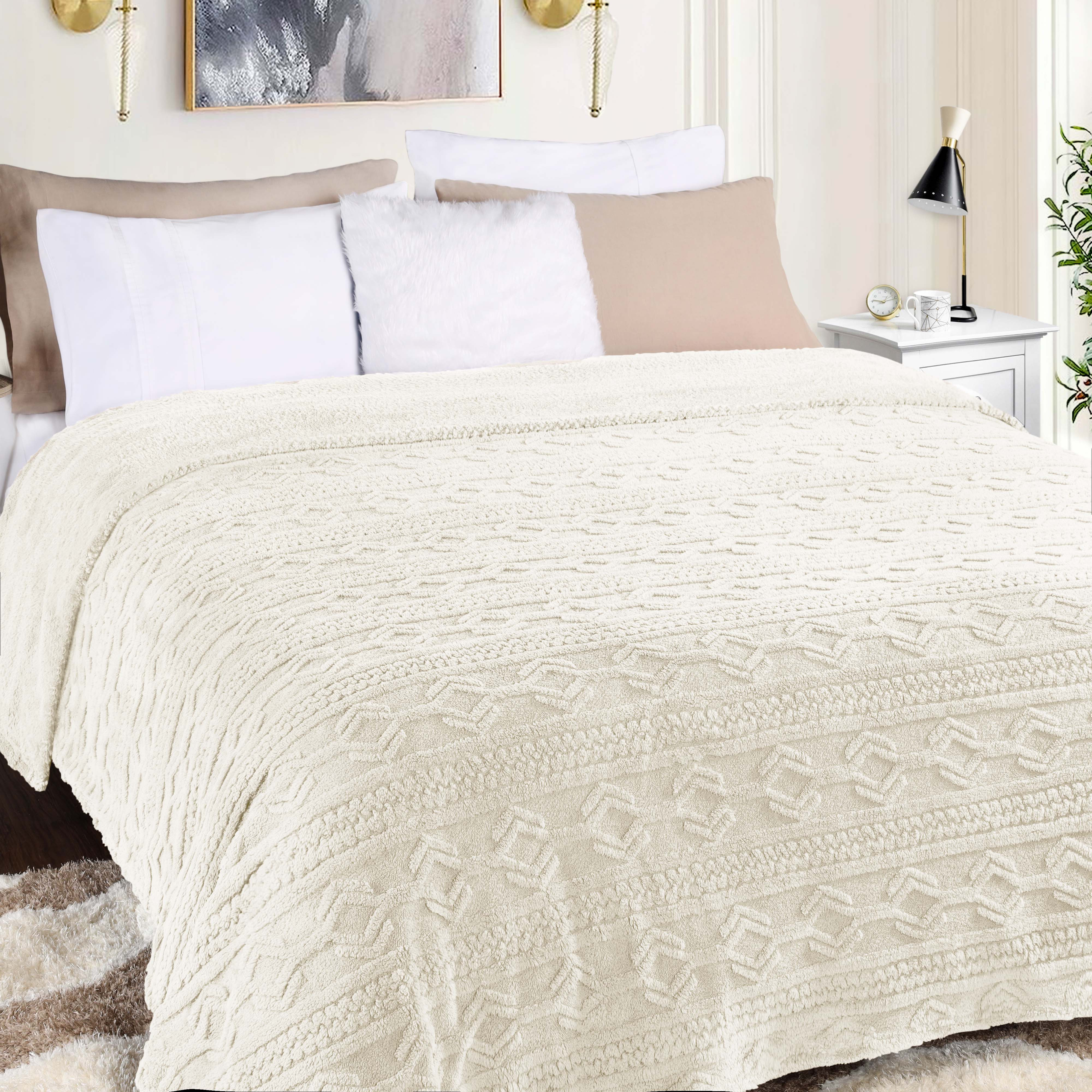 ivory fleece knitted plush blanket, king ivory fleece knitted plush, ivory fleece knitted plush, king ivory fleece knitted, fleece knitted plush blanket |
