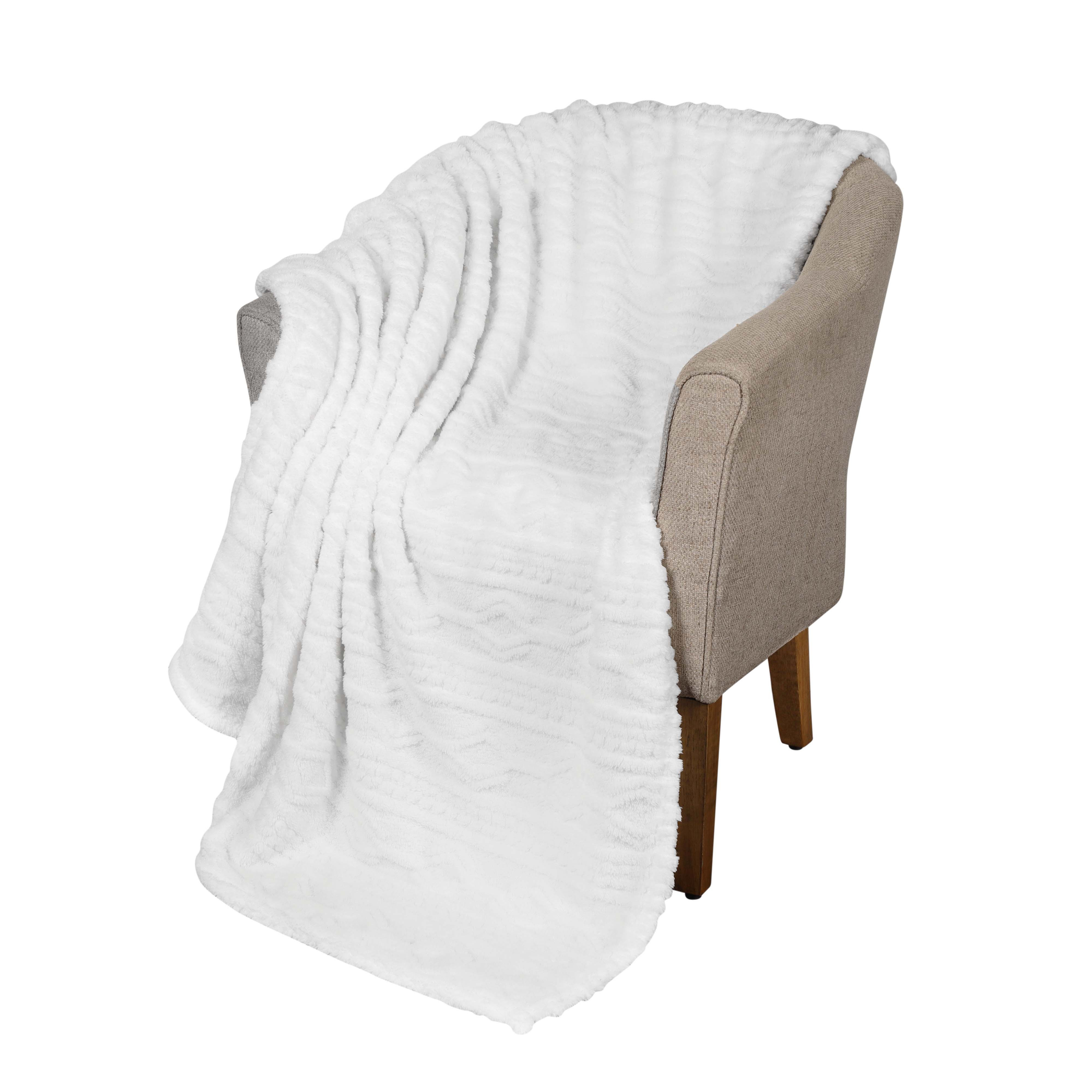 This king white fleece knitted plush blanket is a cozy and stylish addition to your bed ensemble. A classic and timeless design combines with cozy comfy style so this fleece blanket can deliver you a restful and comfortable sleep all year long. This plush throw is cozy soft beyond belief and oh-so-giftable. Enhance your space and the quality of your sleep with this soft and comfortable blanket that helps regulate your core body temperature, helps you to relax, and ultimately fall to sleep. 106-inch h x 90-inch w x 0.5-inch d.