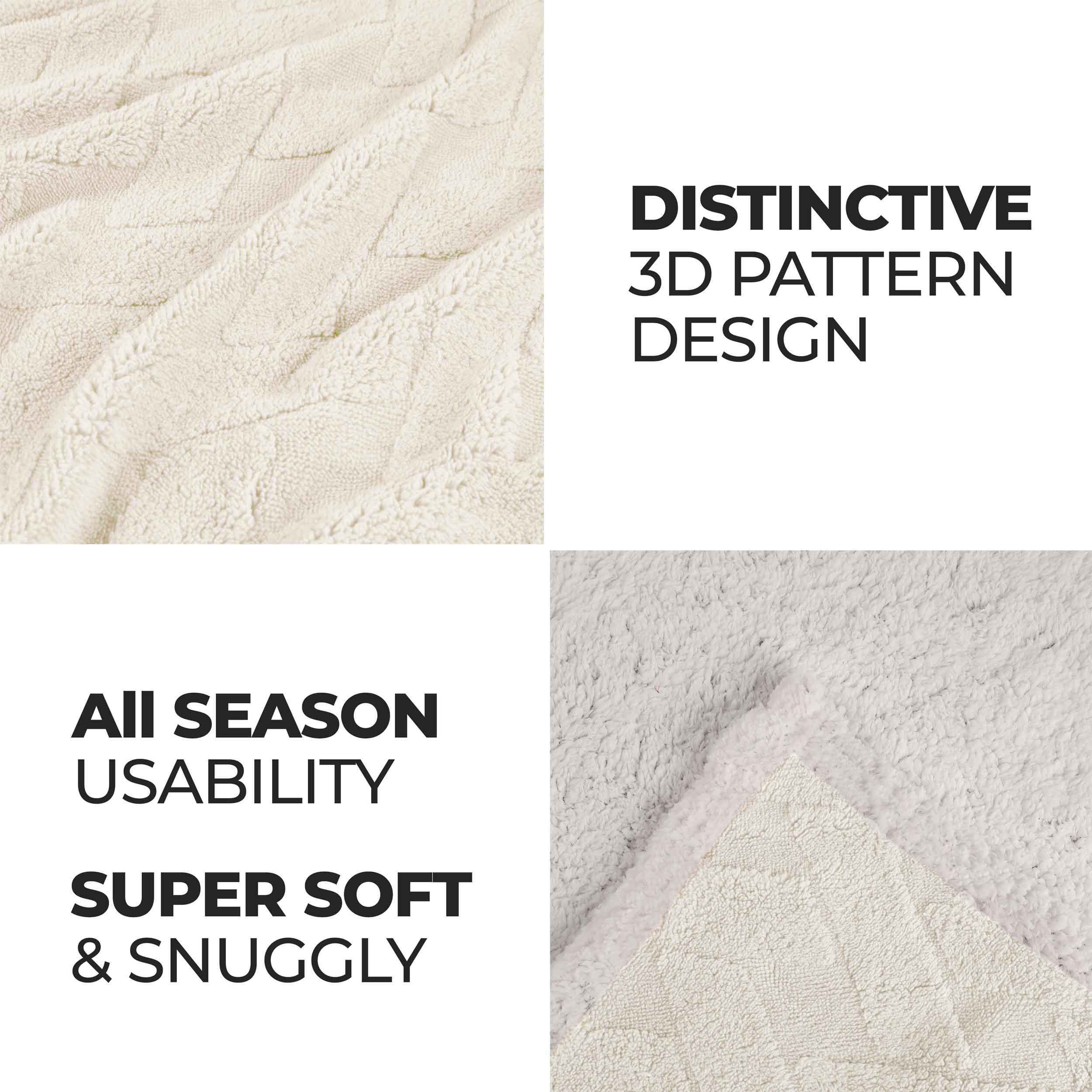 This king ivory geometric fleece woven plush blanket is a cozy and stylish addition to your bed ensemble. Super soft, and featuring timeless style, this fleece blanket offers cozy comfort for a good night's sleep all year long. This ultra-soft plush blanket is designed for ultimate softness. Enhance your space and the quality of your sleep with this soft and comfortable blanket that helps regulate your core body temperature, helps you to relax, and ultimately fall to sleep. 18.50-inch h x 17.30-inch w x 3.54-inch d.