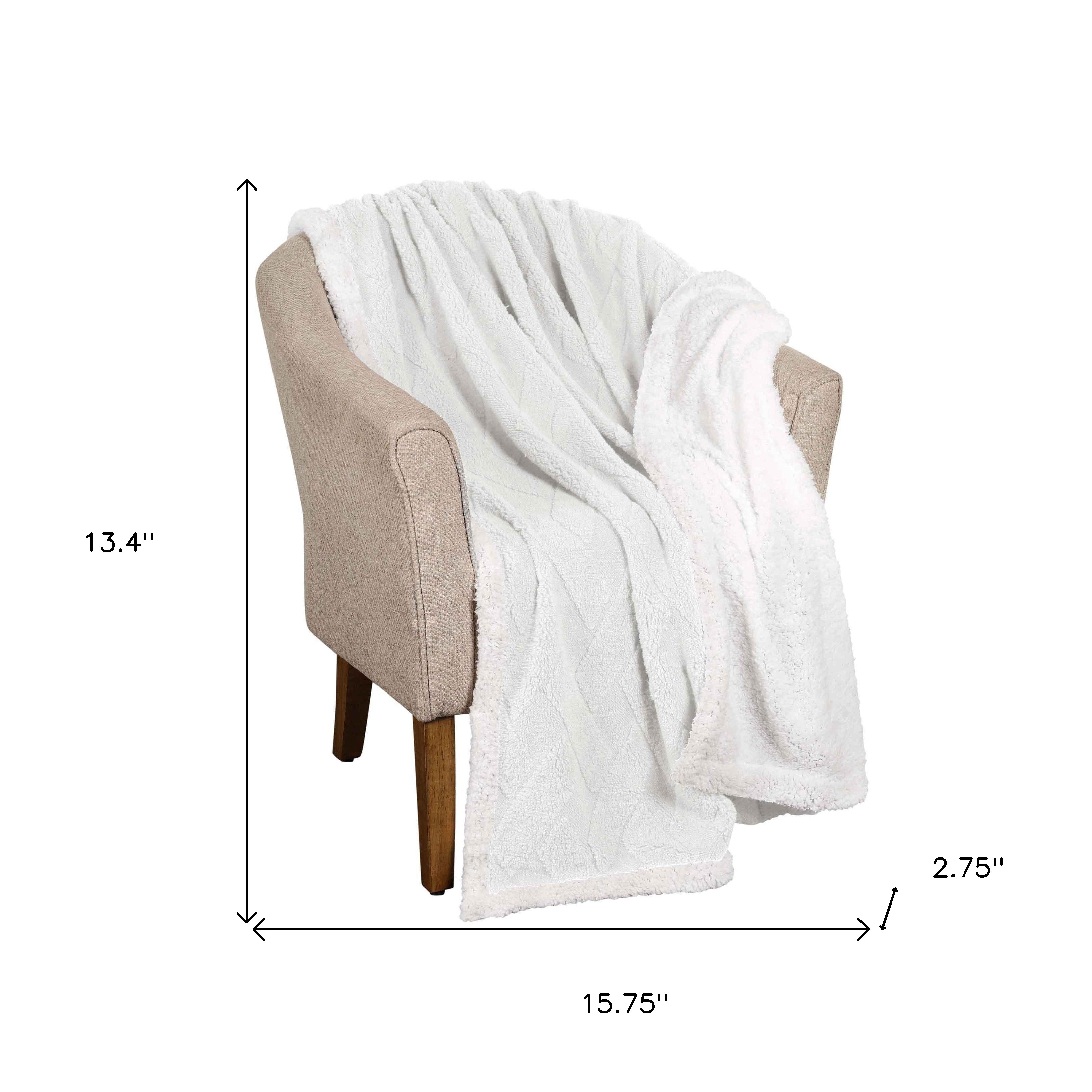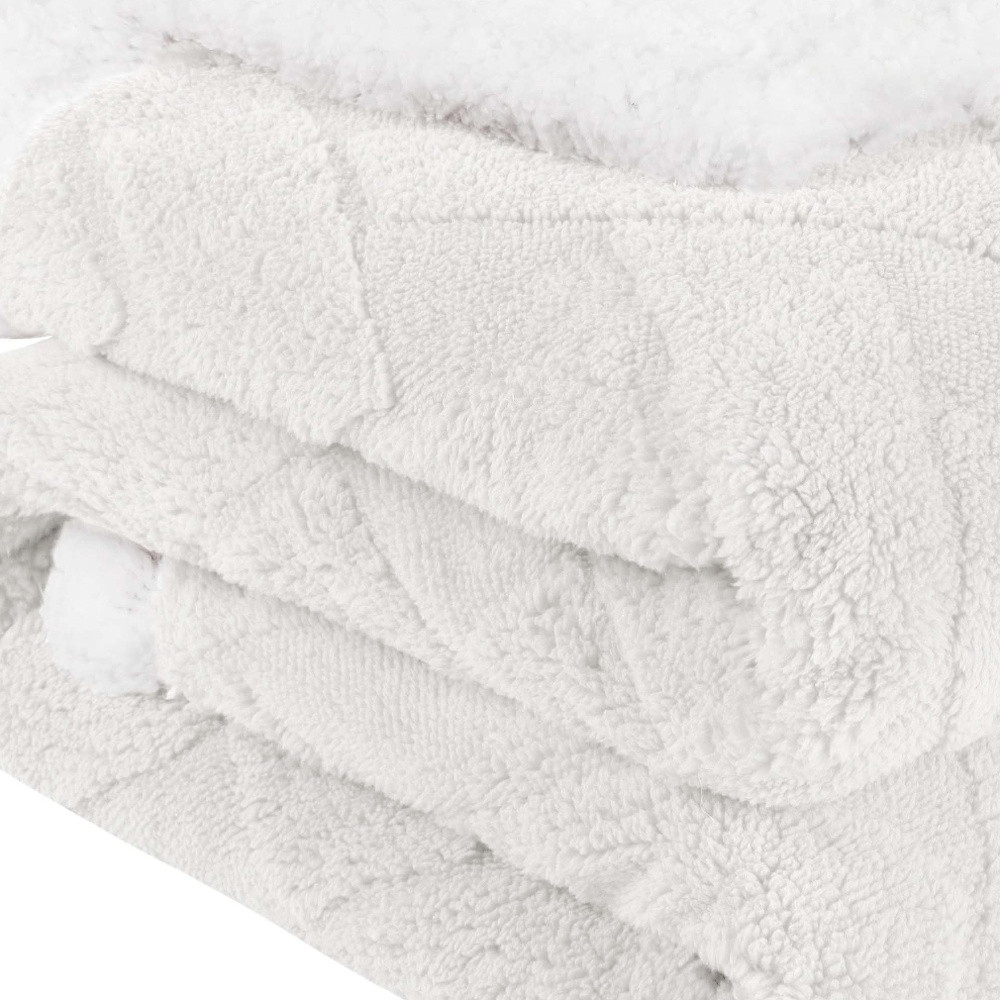 This twin white fleece knitted plush blanket is a cozy and stylish addition to your bed ensemble, but can also be used on the sofa, in your office cubicle, or anywhere you need a warm and soft blanket. Super soft, and featuring timeless style, this fleece blanket offers cozy comfort for a good night's sleep all year long. This plush throw is cozy soft beyond belief and oh-so-giftable. Enhance your space and the quality of your sleep with this soft and comfortable blanket that helps regulate your core body temperature, helps you to relax, and ultimately fall to sleep. 15.75-inch h x 13.4-inch w x 2.75-inch d.