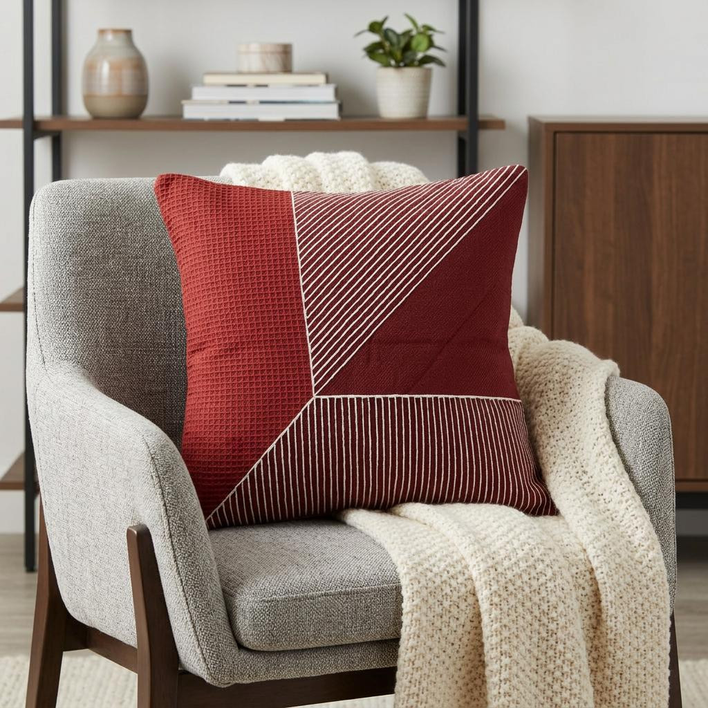 Bring a bit of fashion and zip to your space with this eye-catching and comfy 24-inch red striped cotton throw pillow with embroidery. Durable red cotton has been used to give this pillow a beautiful look that will stand the test of time. This soft polyfill filled pillow not only is decorative but made to be comfy and cozy all day long. Decorative throw pillows not only add color and dimension to your space but can be comfy and supportive when you are lounging and cuddling as well. A great decorative accessory for your favorite chair, to accent your sofa, or to use as part of your bed ensemble. 24-inch H x 24-inch W x 9-inch D
