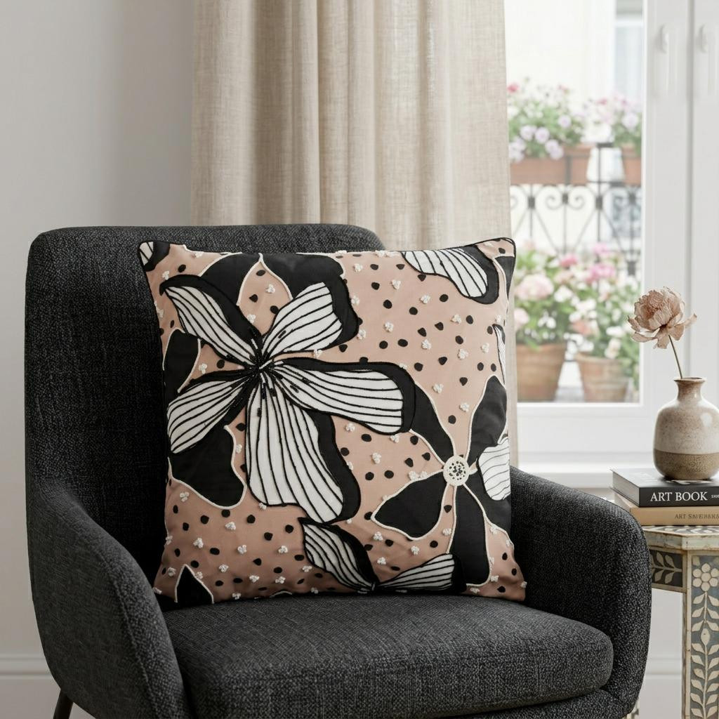 The perfect complement to your sofa, favorite chair, or bed, this 20-inch beige floral throw pillow with embroidery is a great decorative accent. The beige coloring of the extremely durable and long lasting polyester will add dimension and texture to your space. This soft polyfill filled pillow not only is decorative but made to be comfy and cozy all day long. Decorative throw pillows not only add color and dimension to your space but can be comfy and supportive when you are lounging and cuddling as well. Decorative pillows are a great way to change up the look and feel of your space easily and quickly. 20-inch H x 20-inch W x 8-inch D