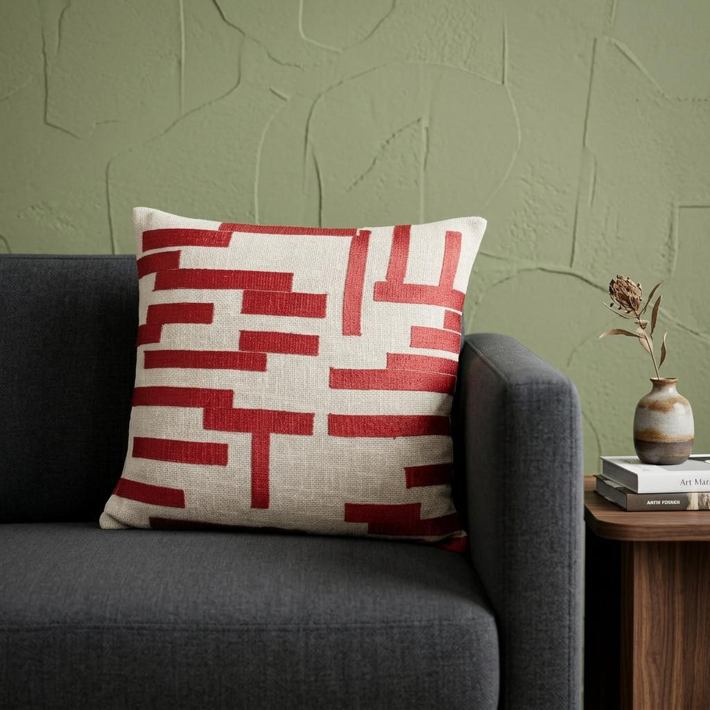 Unique and decorative, this comfortable 24-inch red geometric cotton blend throw pillow with embroidery will leave a lasting impression. Durable red cotton blend has been used to give this pillow a beautiful look that will stand the test of time. Super soft and built to hold its shape, this polyfill pillow is a great option. Decorative throw pillows not only add color and dimension to your space but can be comfy and supportive when you are lounging and cuddling as well. A great decorative accessory for your favorite chair, to accent your sofa, or to use as part of your bed ensemble. 24-inch H x 24-inch W x 9-inch D