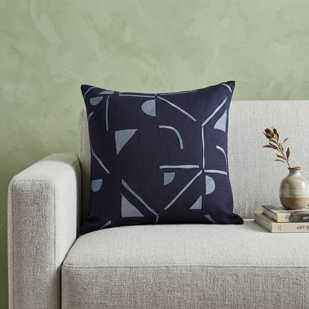 Unique and decorative, this comfortable 24-inch blue geometric cotton blend throw pillow with embroidery will leave a lasting impression. The blue coloring of the extremely durable and long lasting cotton blend will add dimension and texture to your space. This soft polyfill filled pillow not only is decorative but made to be comfy and cozy all day long. For anyone that loves to decorate or accent their space with color and texture. Decorative pillows are a great way to change up the look and feel of your space easily and quickly. 24-inch H x 24-inch W x 9-inch D