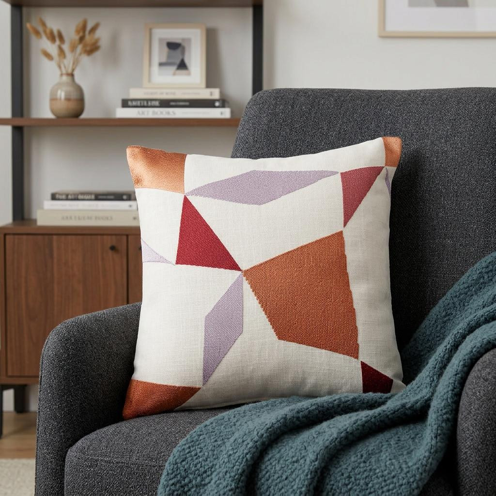 Unique and decorative, this comfortable 20-inch ivory red and orange geometric cotton blend throw pillow with embroidery will leave a lasting impression. This ivory red and orange hued piece represents quality construction, expertly made from durable cotton blend that is not only long lasting but soft to the touch as well. Embroidered decorative accents add some high end and hand-crafted textural designer touches. This soft polyfill filled pillow not only is decorative but made to be comfy and cozy all day long. Decorative throw pillows not only add color and dimension to your space but can be comfy and supportive when you are lounging and cuddling as well. Decorative pillows are a great way to change up the look and feel of your space easily and quickly. 20-inch H x 20-inch W x 8-inch D
