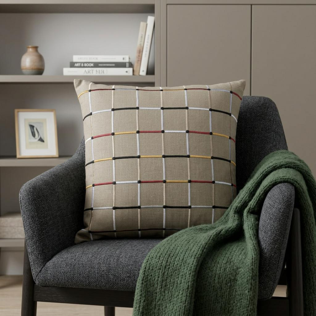 beige cotton blend pillow embroidery, cotton blend pillow embroidery edges, cotton blend pillow embroidery, blend pillow embroidery, 24" beige cotton blend pillow |
