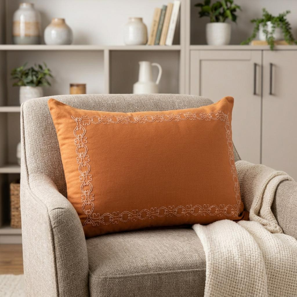 14" X 20" orange cotton pillow embroidery, orange cotton pillow embroidery edges, orange cotton pillow embroidery, cotton pillow embroidery, cotton pillow embroidery edges |